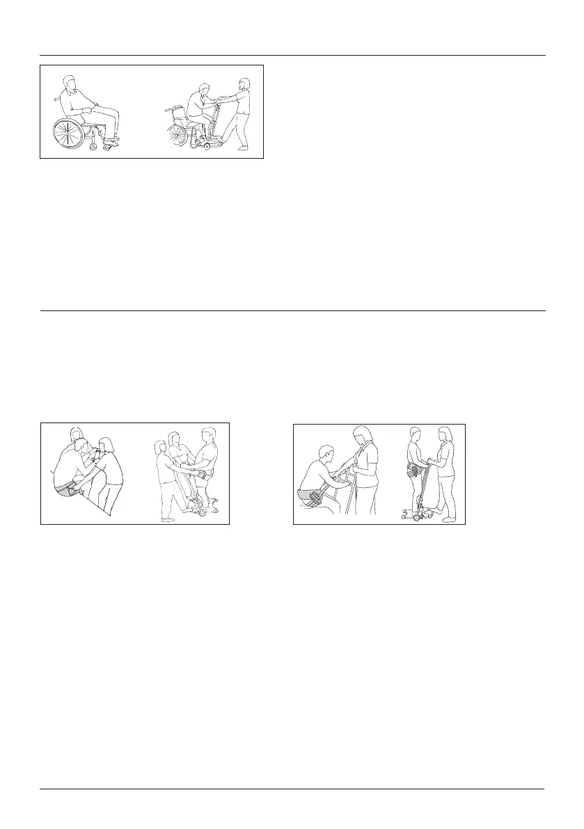 posizionare i piedi sulla pedana, afferrare le maniglie, piegarsi in avanti e poi sollevarsi dalla sedia. L’assistente deve fare da