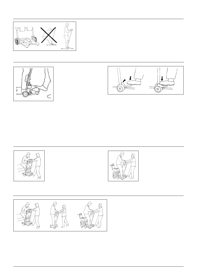 de la silla. Coloque los pies del usario sobre la placa base. El usario debe agarrar la escalerilla de ascenso, inclinarse hacia