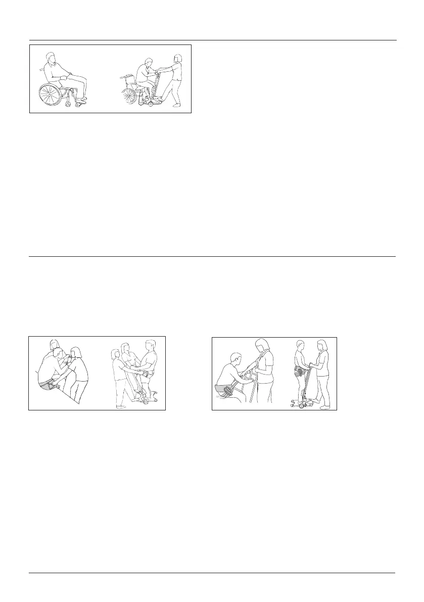 fasst den Griff, lehnt sich nach vorne und erhebt sich vom Sitz. Die Hilfsperson bietet Gegengewicht. Schieben Sie den Benutzer