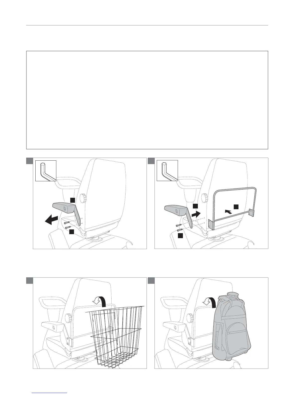 • Remove the armrest on both sides from the backrest