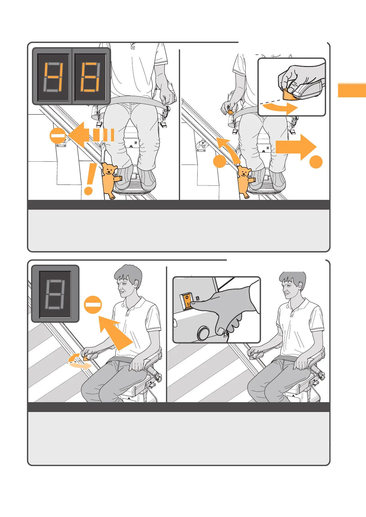 spostare il montascale nella direzione opposta{A} e rimuovere l'ostacolo{B}.