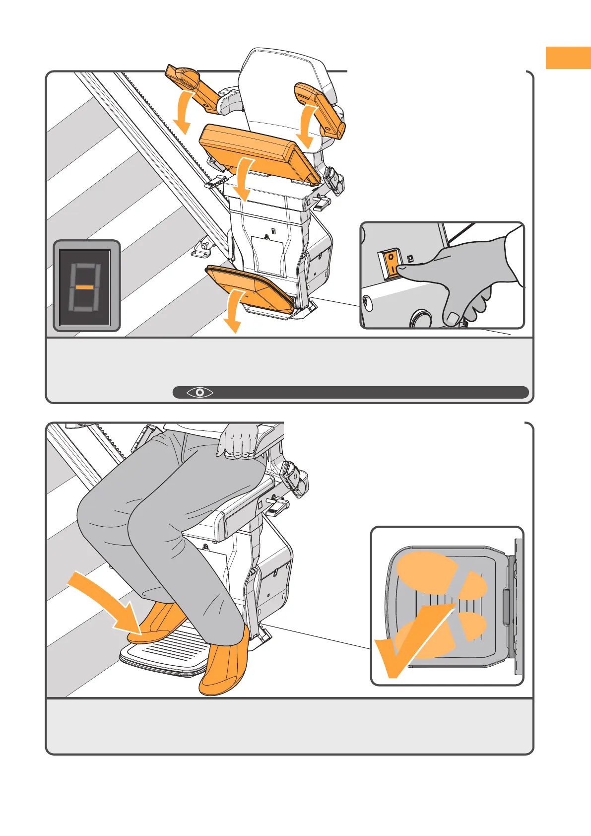 Zorg ervoor dat de aan-/uit-schakelaar in de stand ‘AAN’ staat, als u de traplift