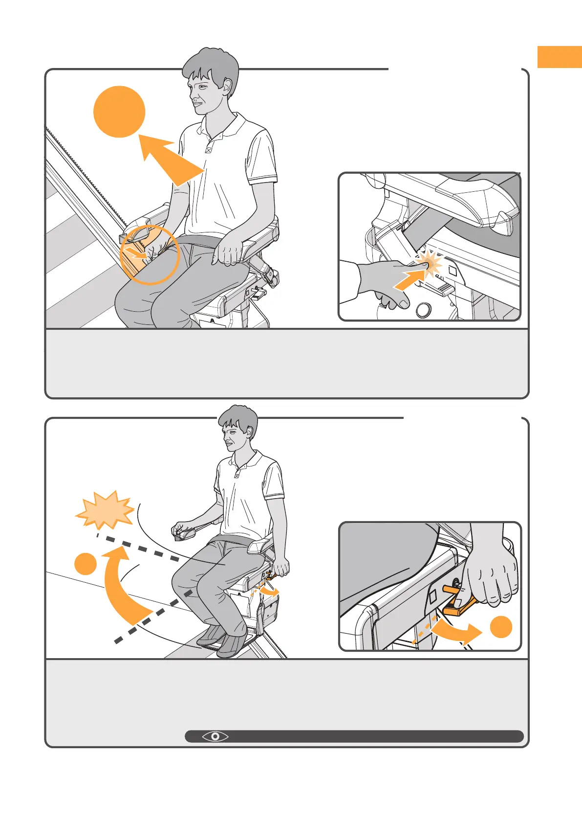 De lift stopt automatisch aan het einde van de rail. U kunt de stoel nu handmatig