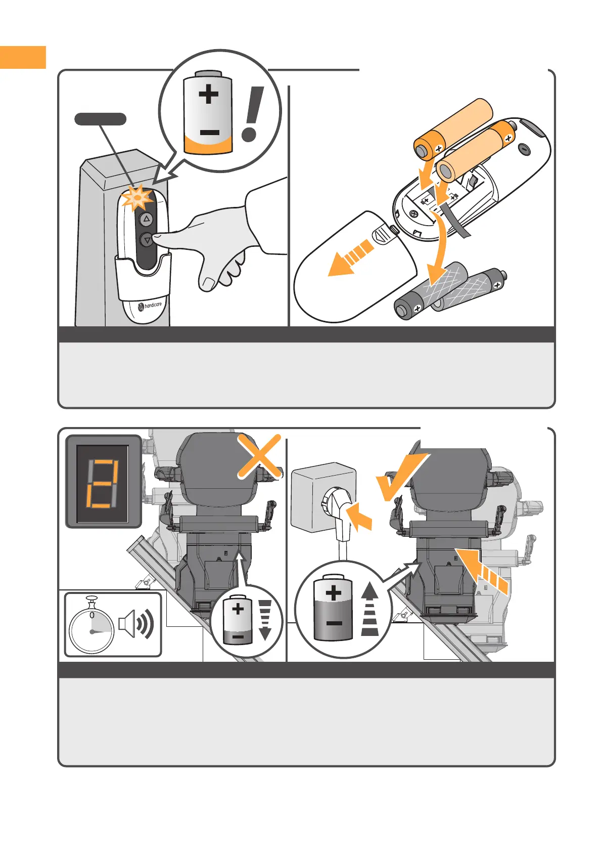 Oorzaak: de lift staat niet of niet goed op een laadstation, of de stekker zit niet in