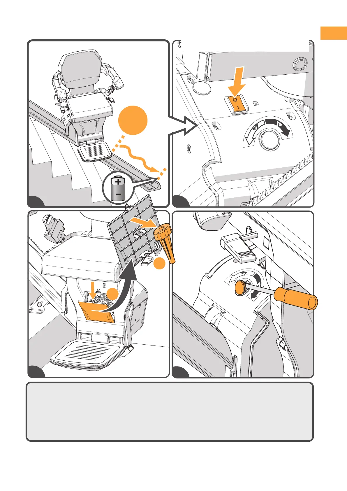 [B.1]Als de lift onverwacht stopt en niet meer verder wil, kan de handwinder