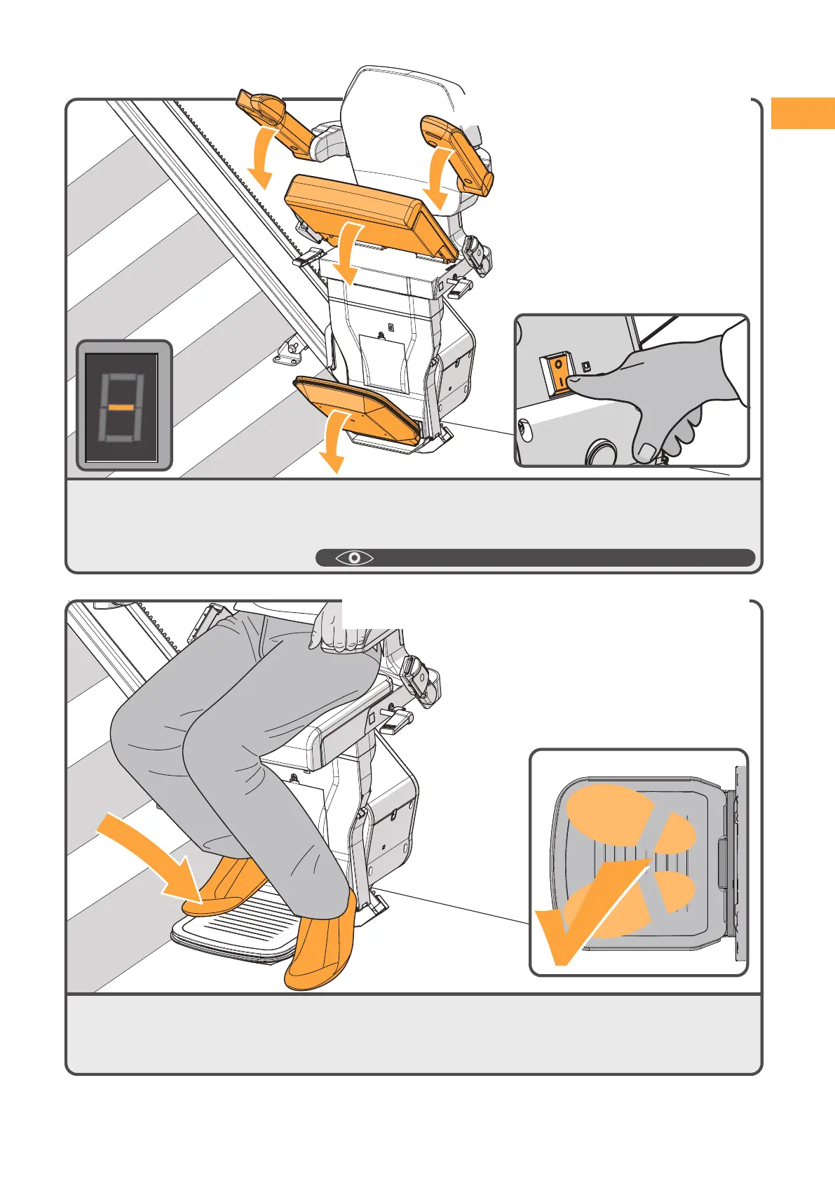 Stellen Sie Ihre Füße auf die Fußstütze. Achten Sie darauf, dass keiner Ihrer Füße