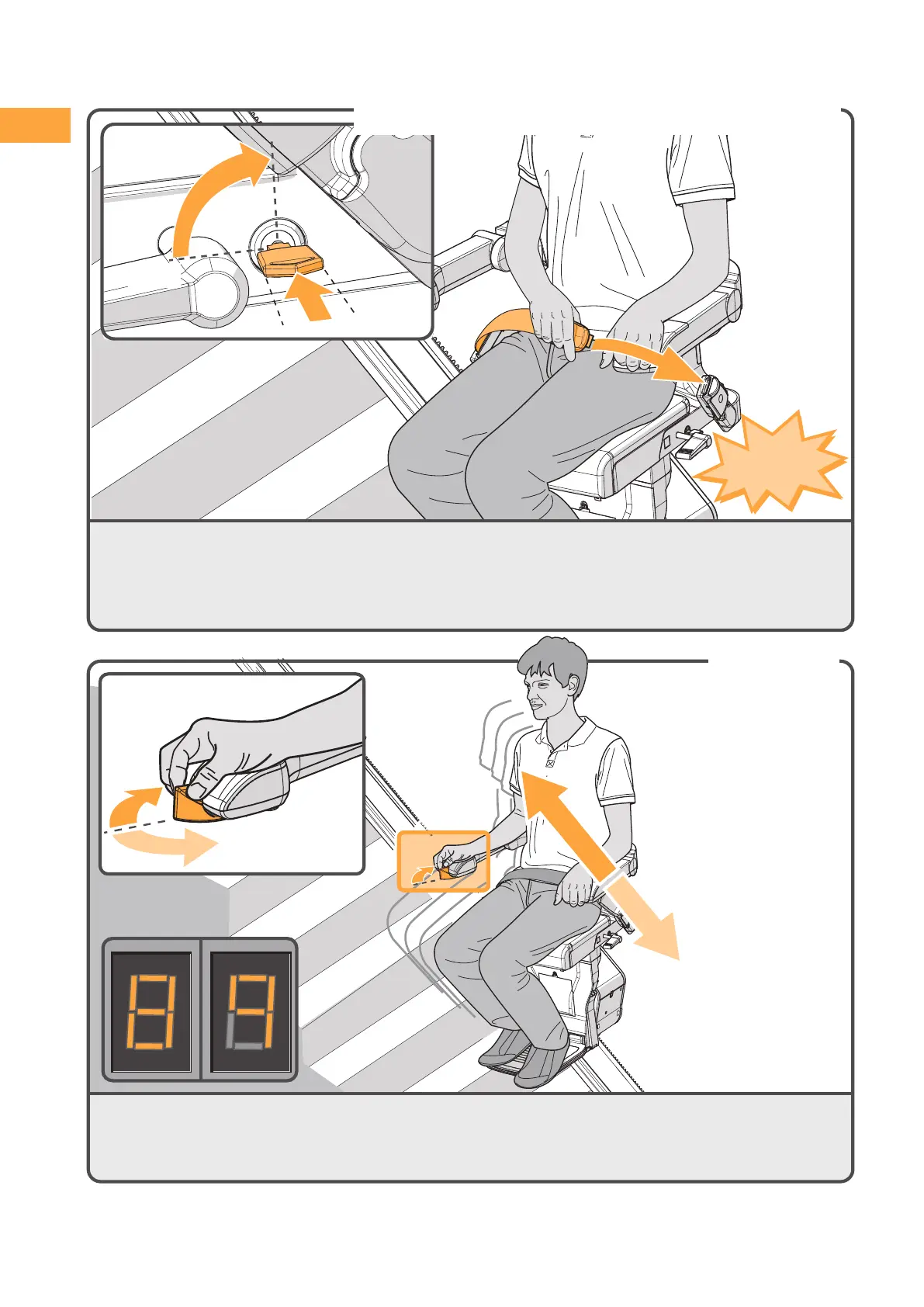 Vierteldrehung nach rechts. Prüfen Sie, ob der Sitz verriegelt ist.