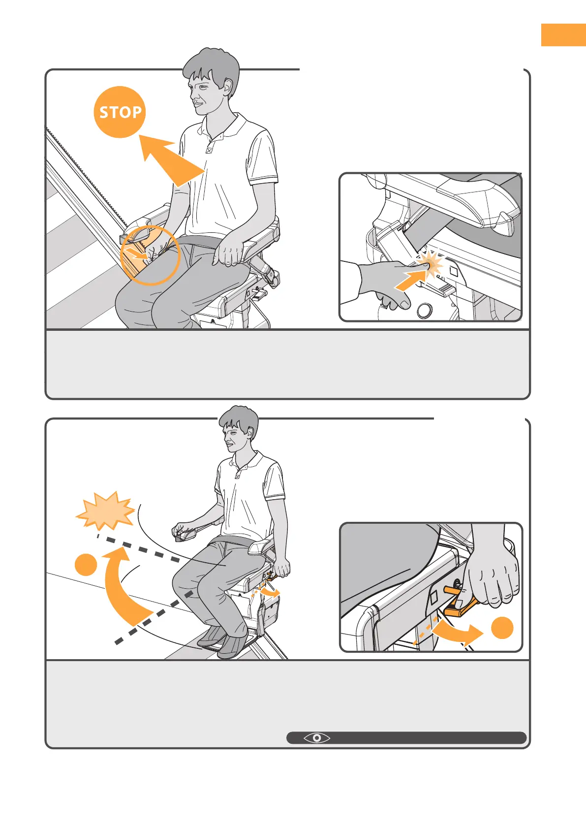 In an emergency, press the emergency stop once. The lift stops straight away.