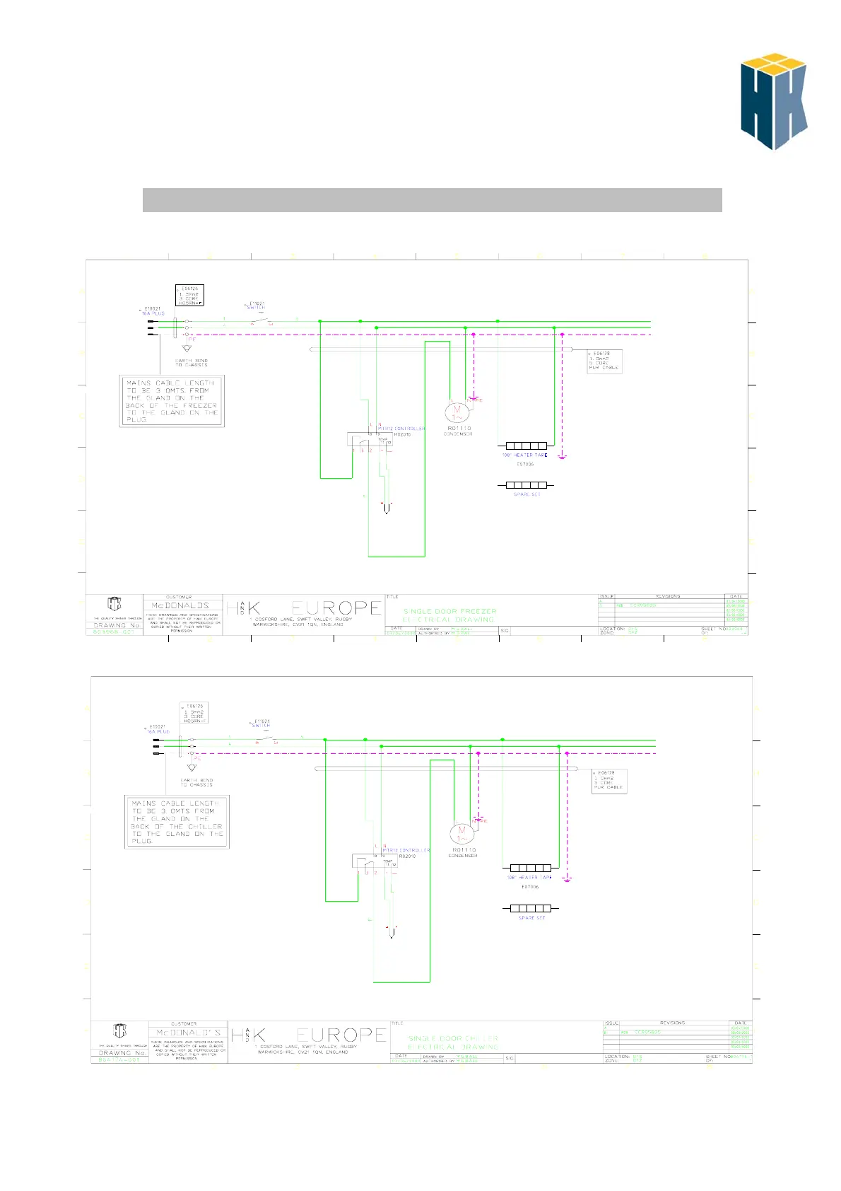 H&K 804800 - Wiring Schematic; Freezer; Chiller