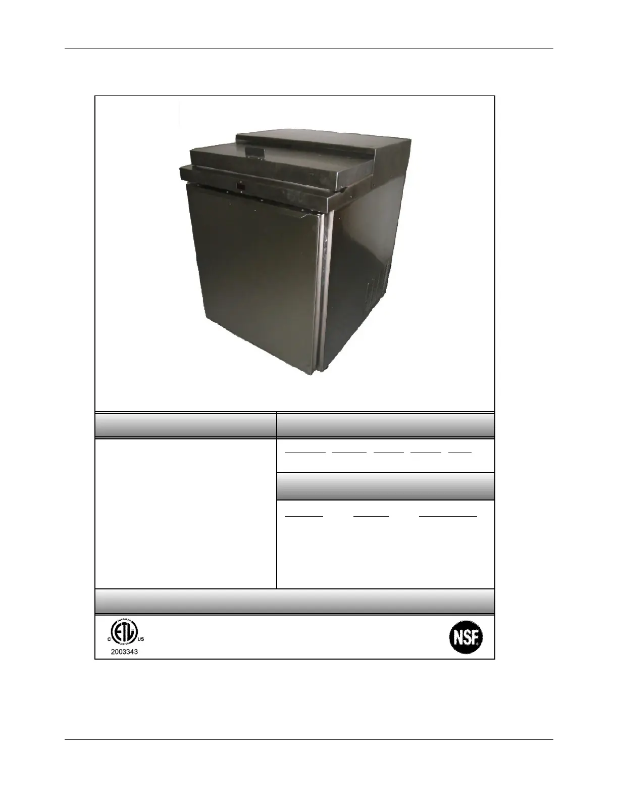 8. Unit Specifications - GSF30 Mobile Freezer