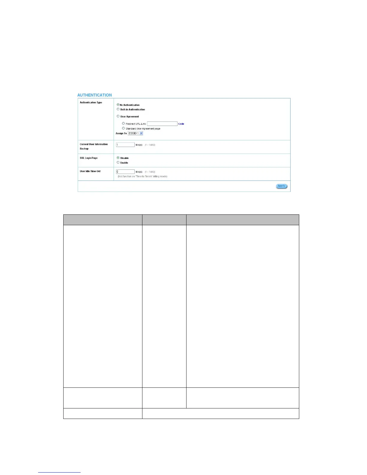 Authentication Type No Authentication Option: No Authentication, Built-in Authentication or