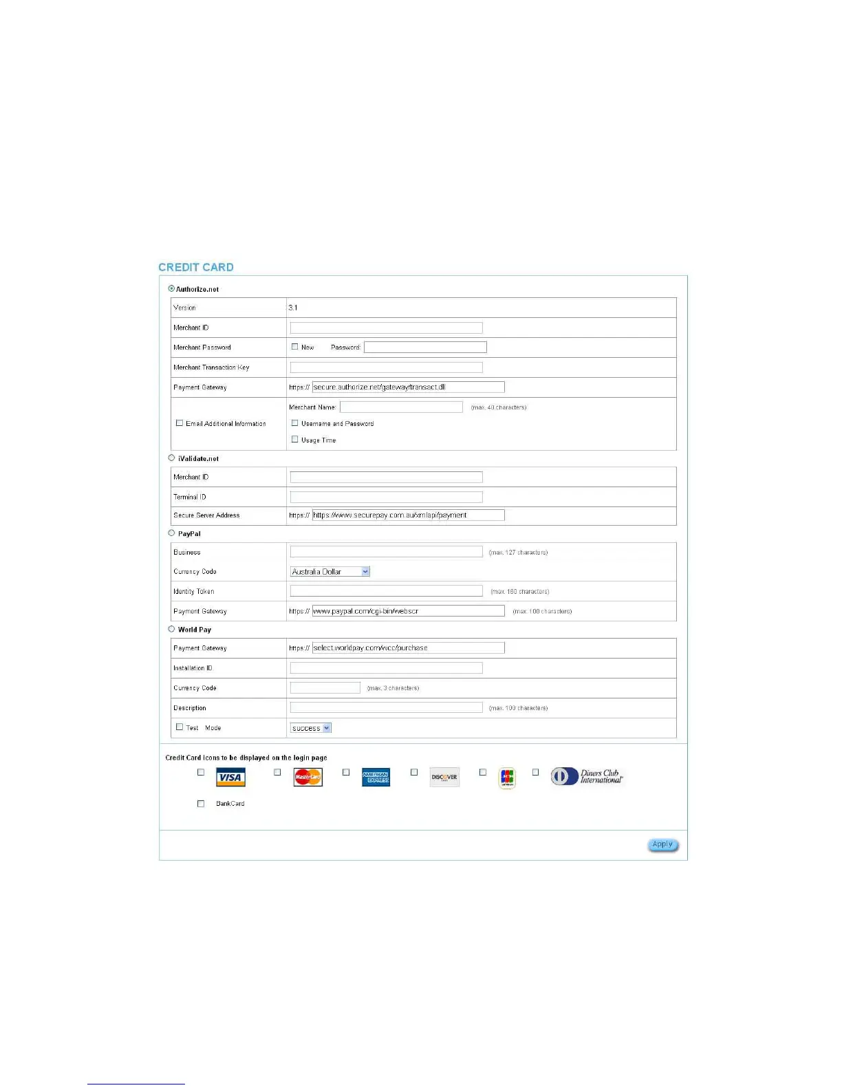 Figure3‐2‐20CreditCardSettingScreen