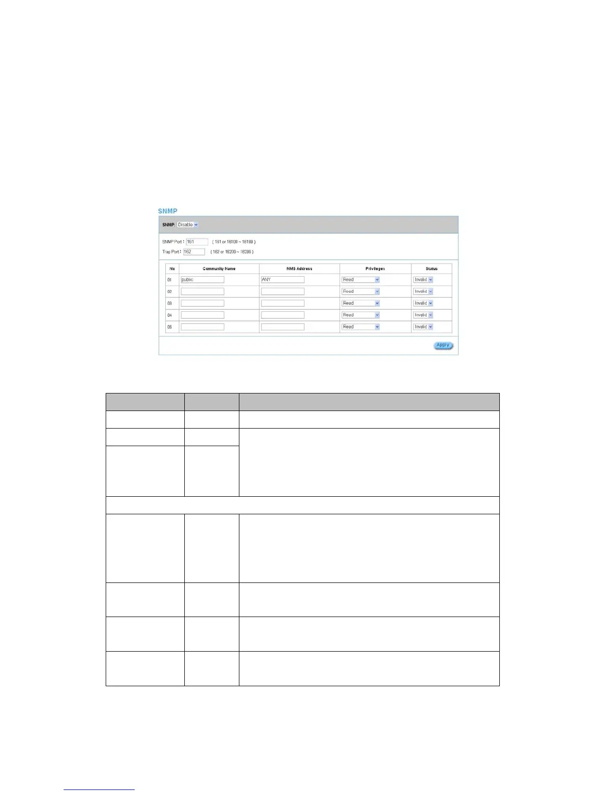 SNMP Port 161 If the SNMP enables, also allowed to specific the SNMP port number via