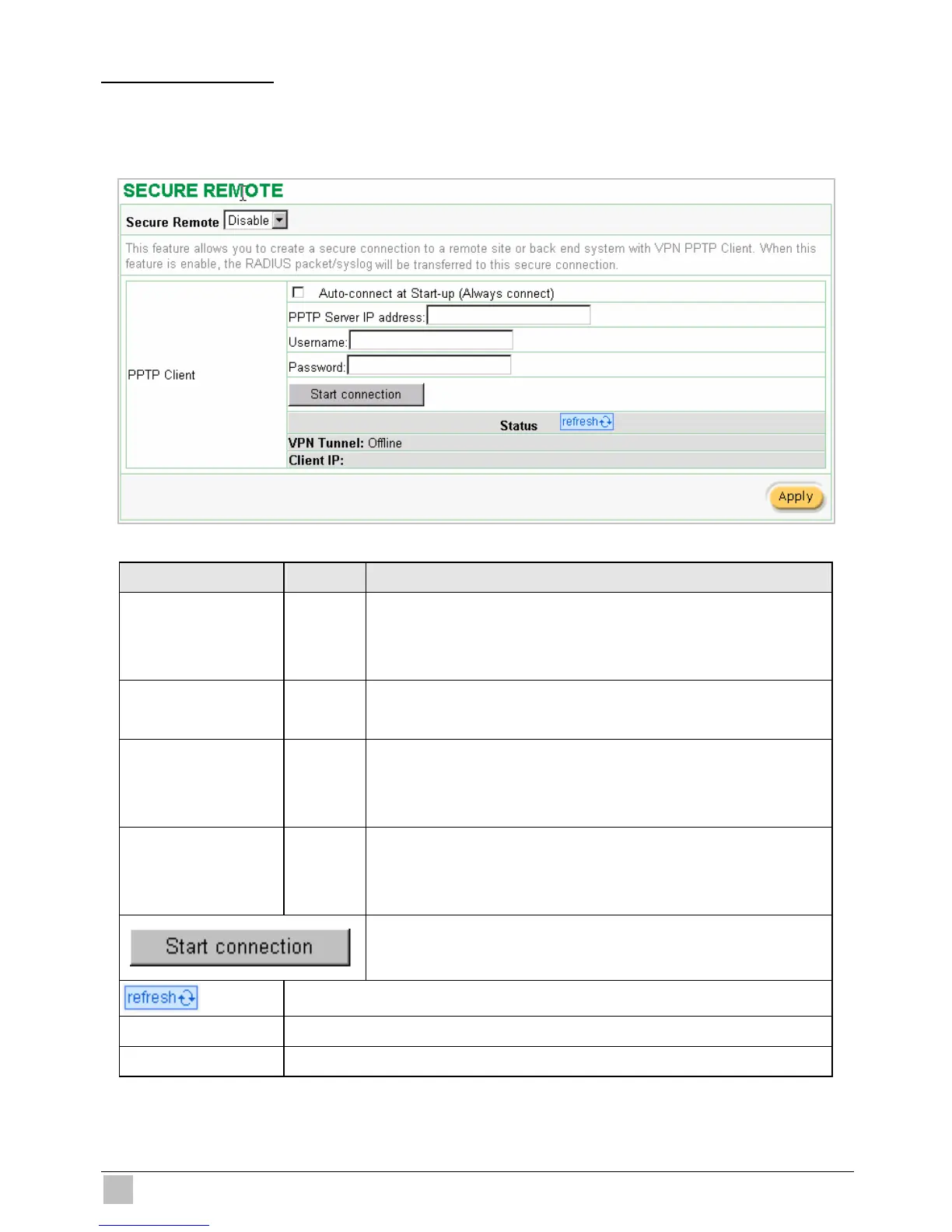 PPTP Client. If “Secure Remote” is enabled, the RADIUS packet/ syslog will be transferred to this