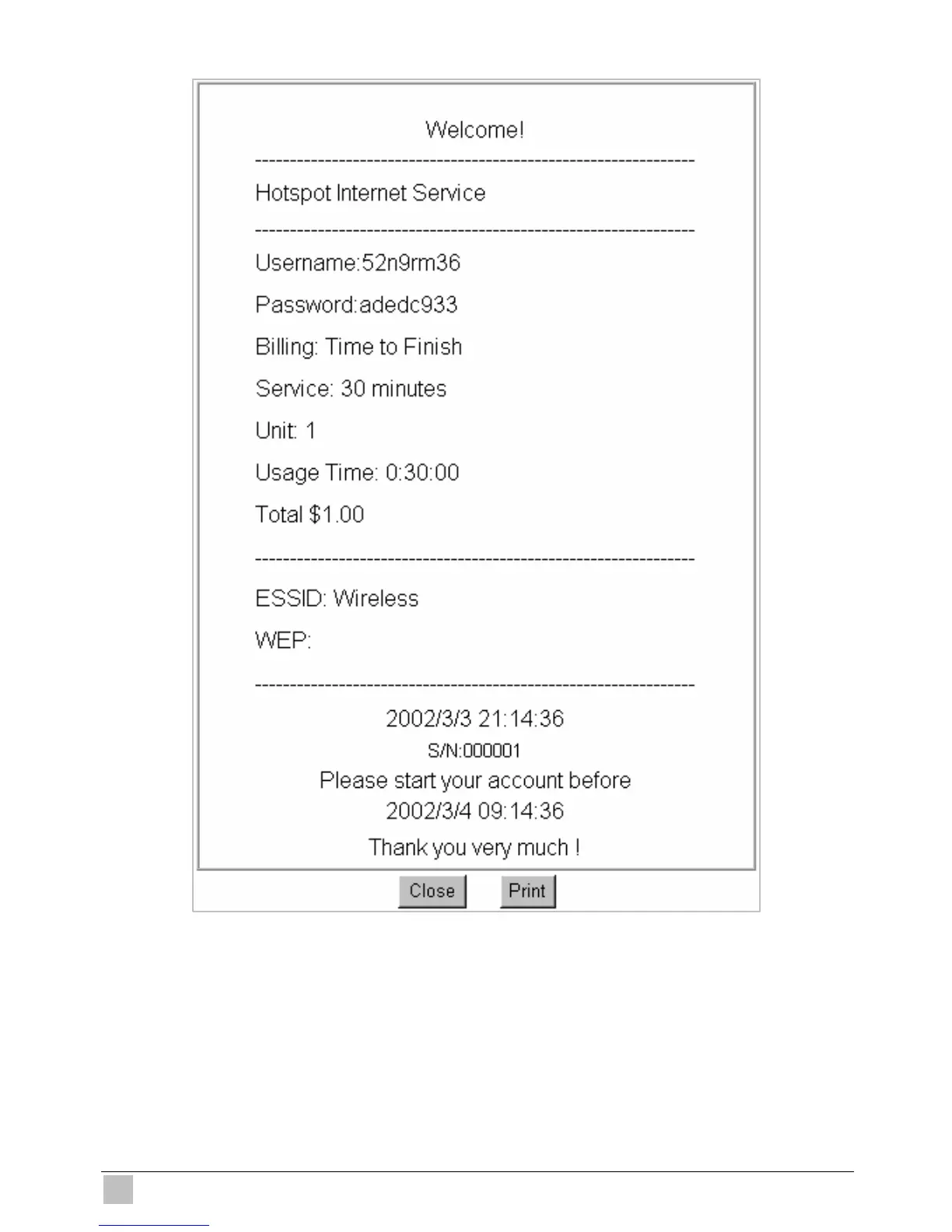 Figure 3-20 Example-Account Printout