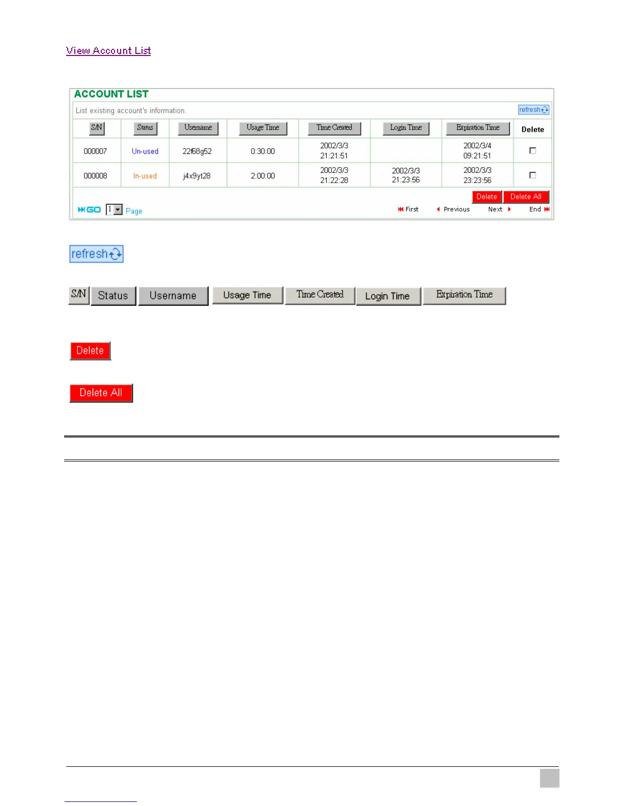 Click “View Account List” to display current account information.