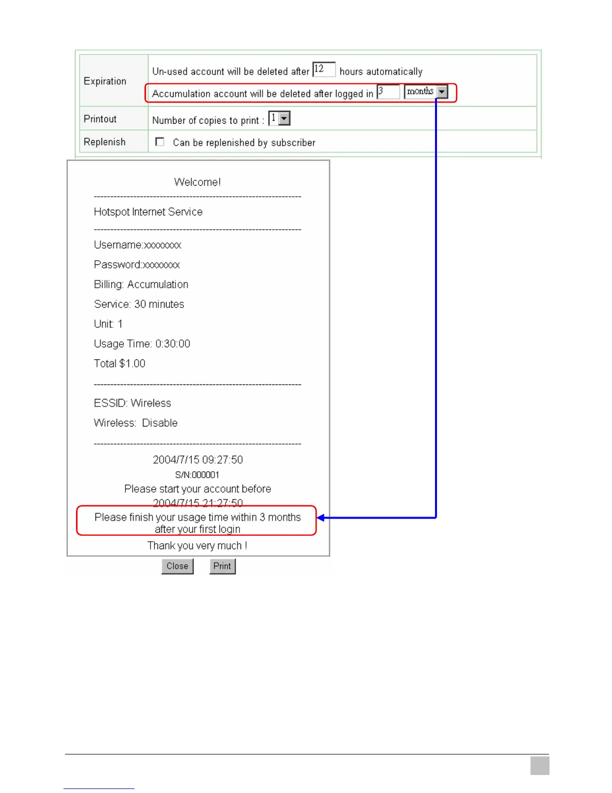 Figure 3-61 Web-based Account Generator Printout (Accumulation)