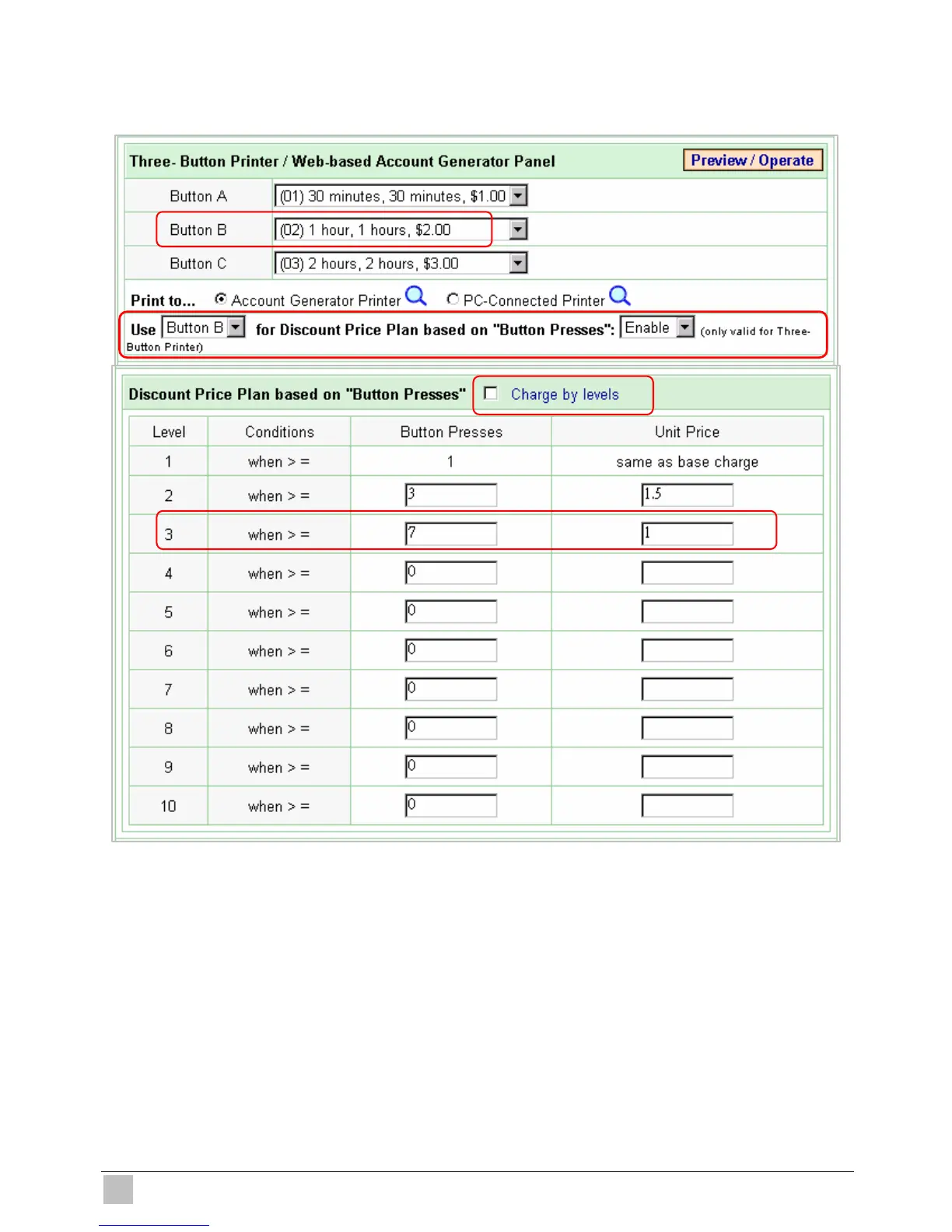z Discount Price Plan based on “Button Presses” is enabled.