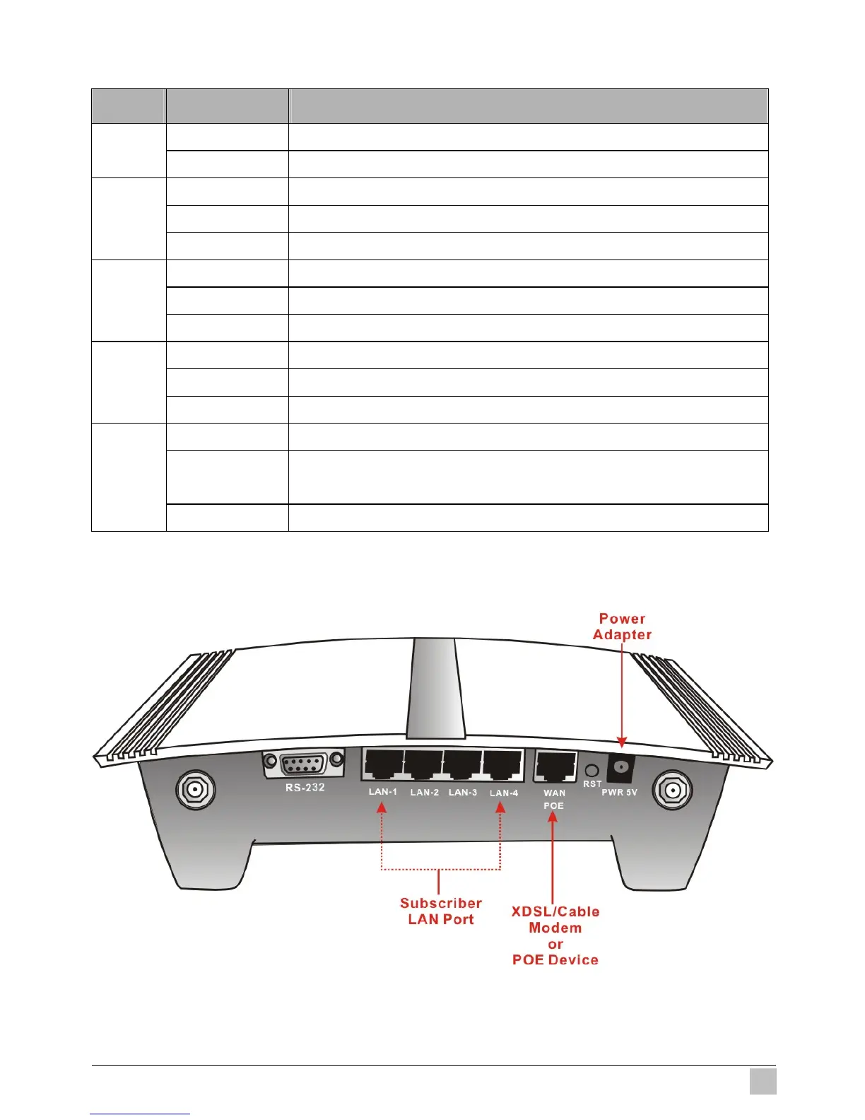 The rear panel of the Wireless Subscriber Gateway is shown below.