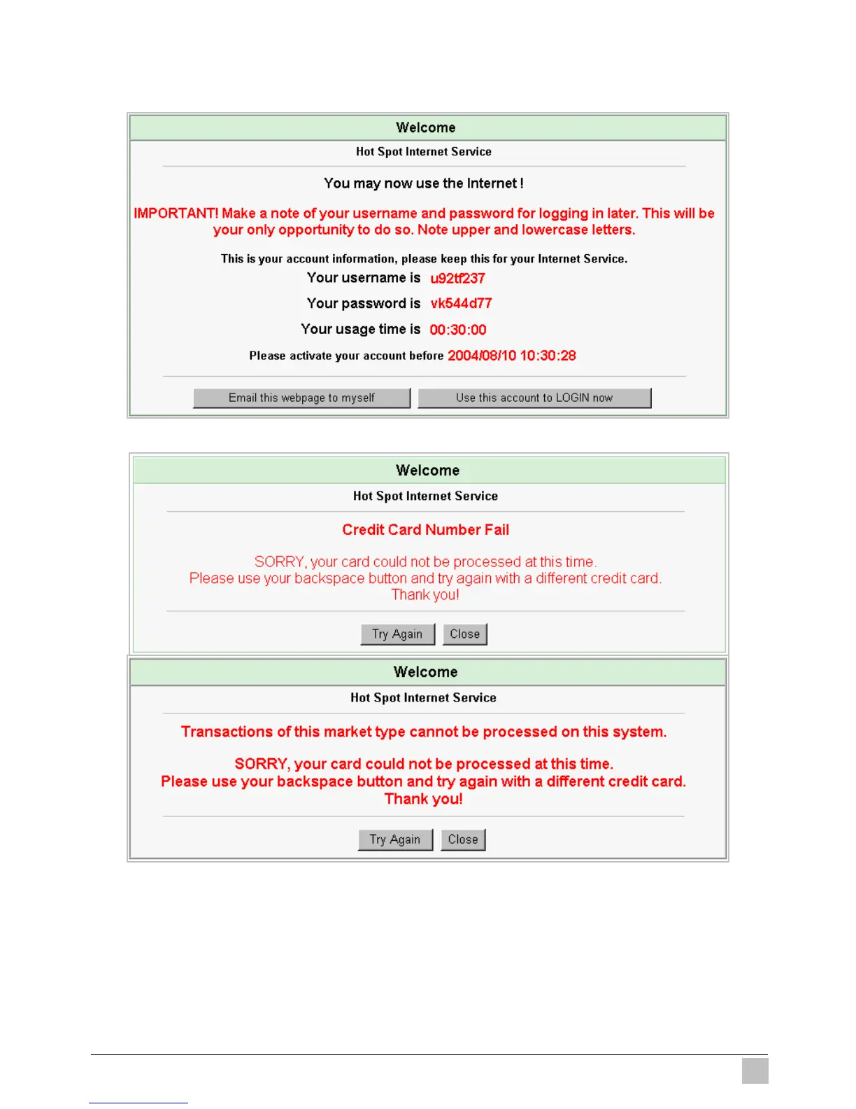 Step 3: After valid payment information has been provided, the subscriber will obtain one valid account