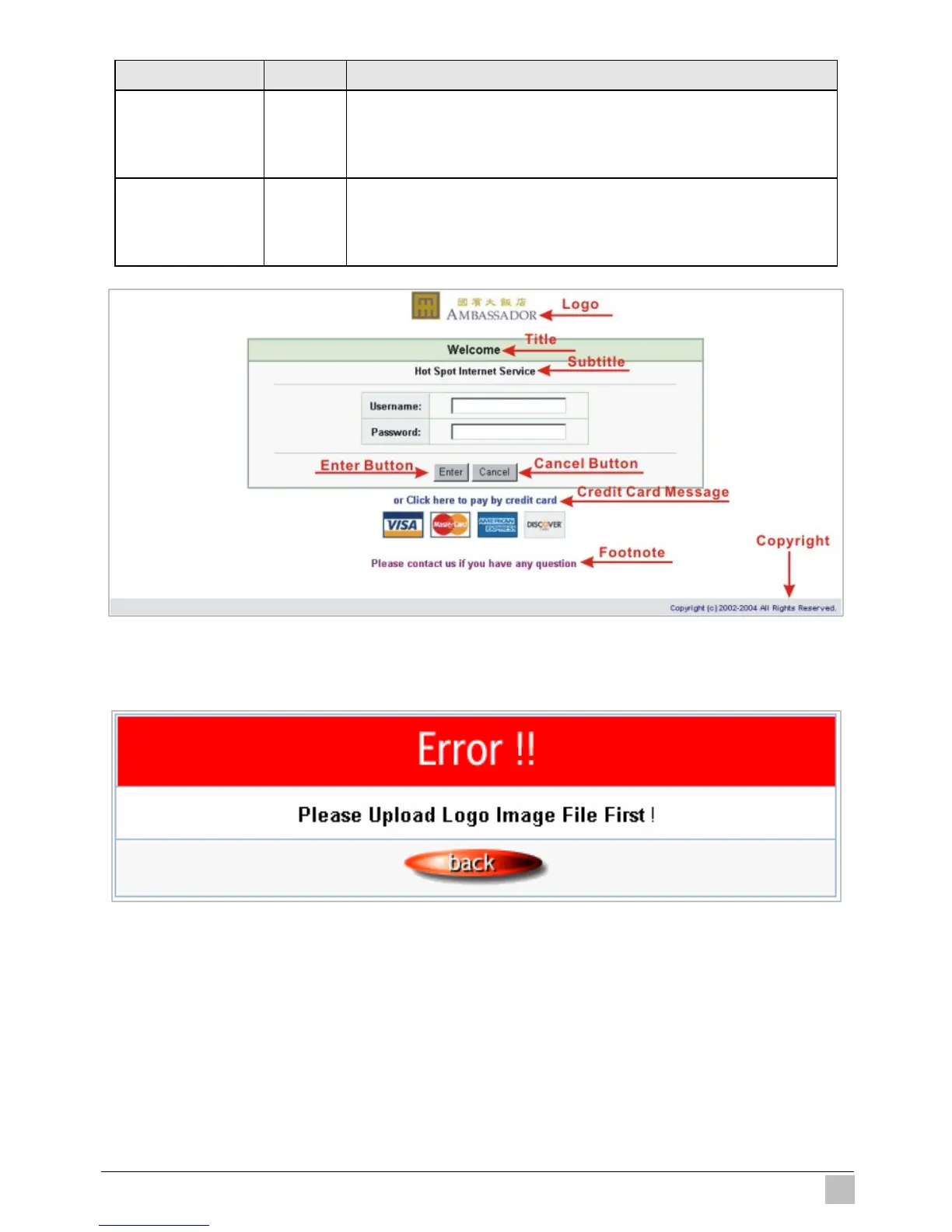 Copyright Enable The copyright is allowed the administrator to input a paragraph in
