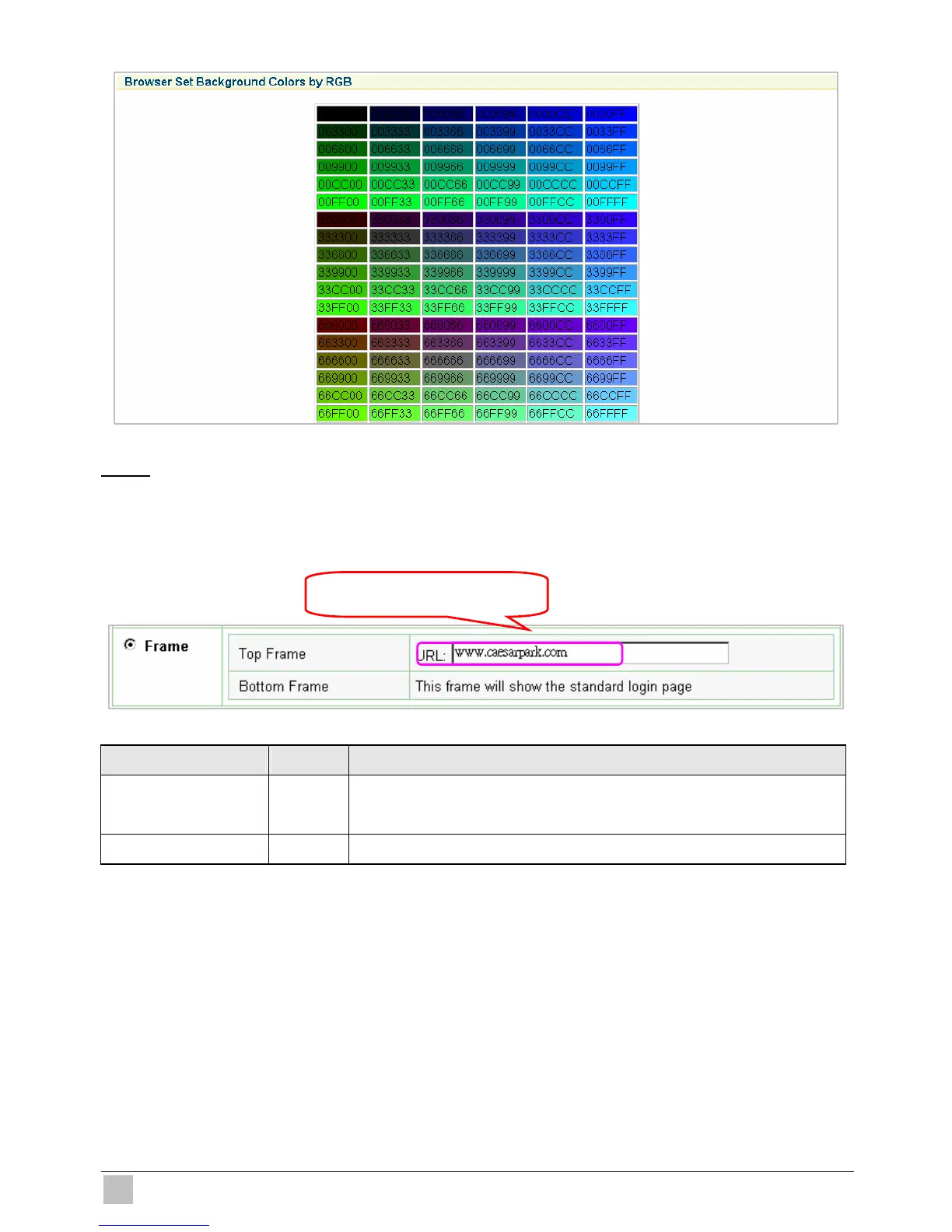 If “Frame” is selected the subscriber login page will be separate into Top Frame and Bottom Frame.