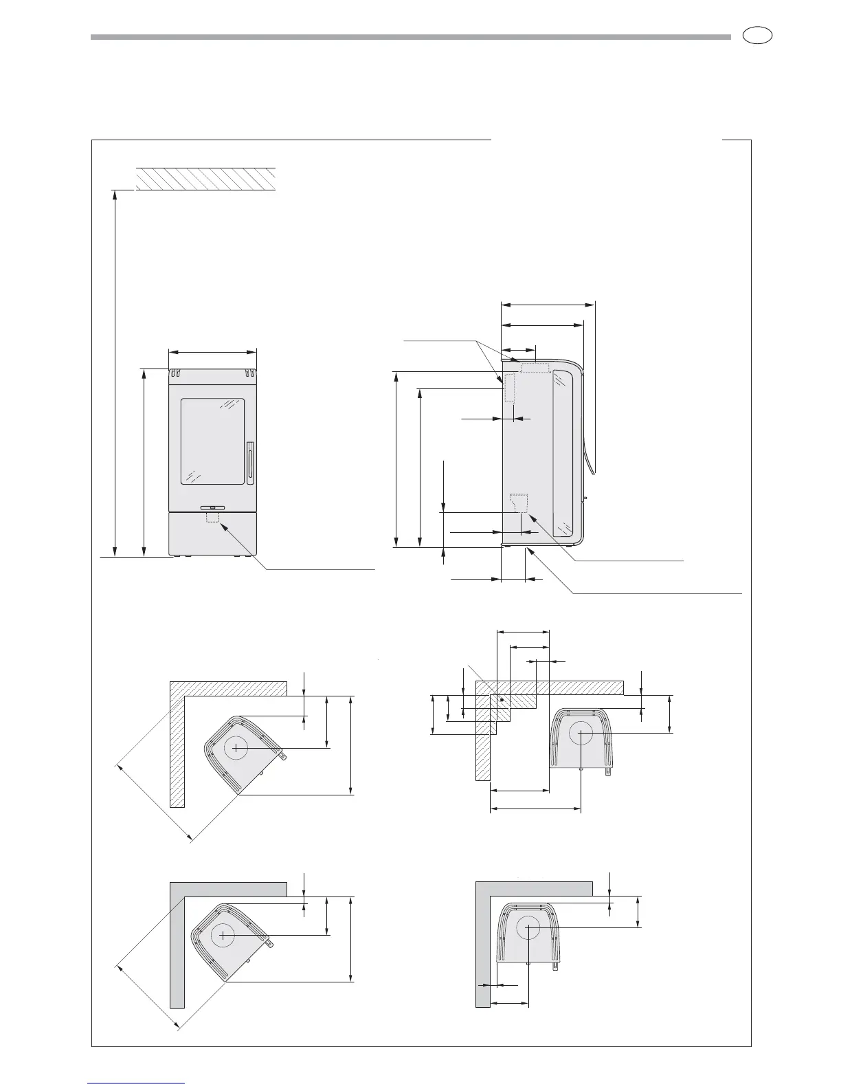 in the diagrams are met. The minimum distance between the stove opening and