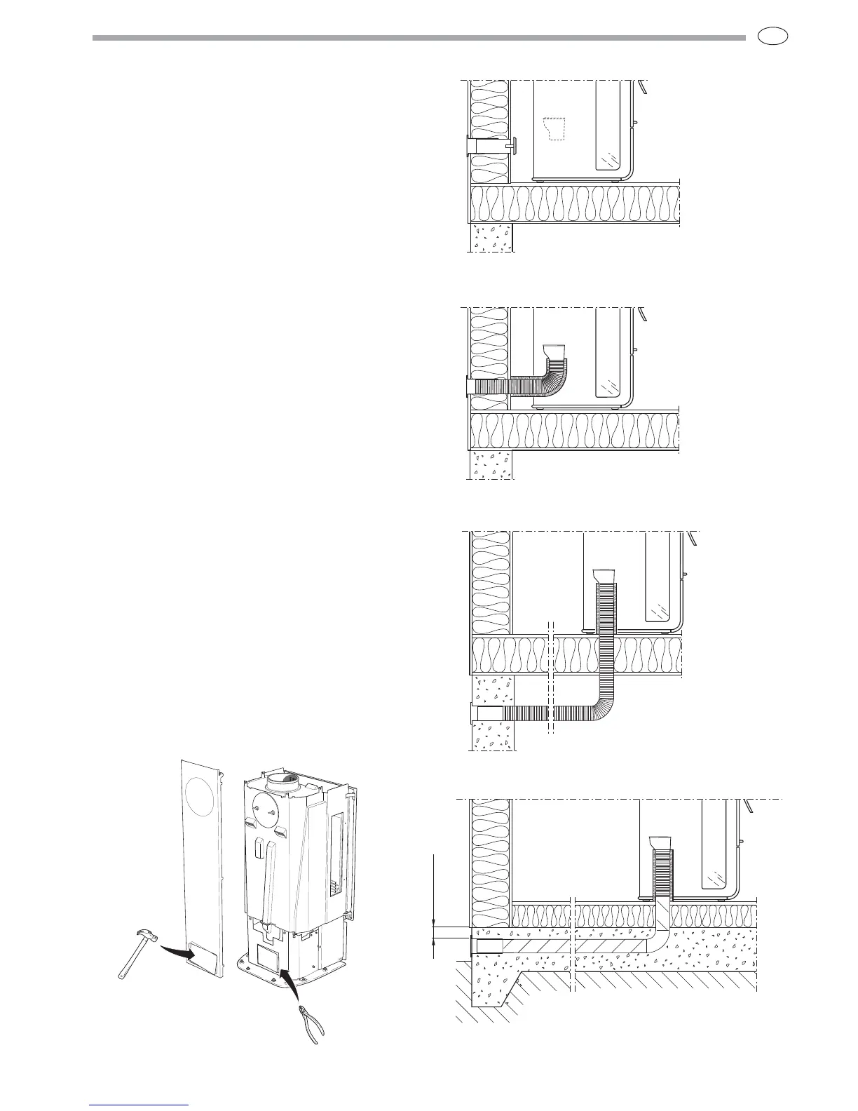 To insert the combustion air hose, tap out the