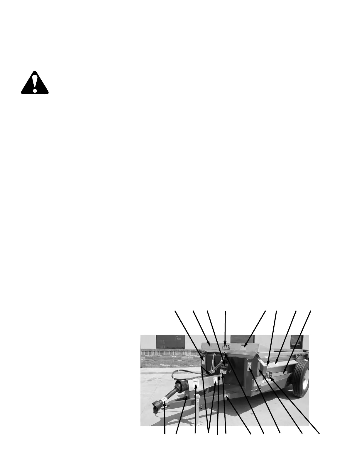 spreader are various decals to aid in operation, and warn of danger or caution areas. Pay close attention