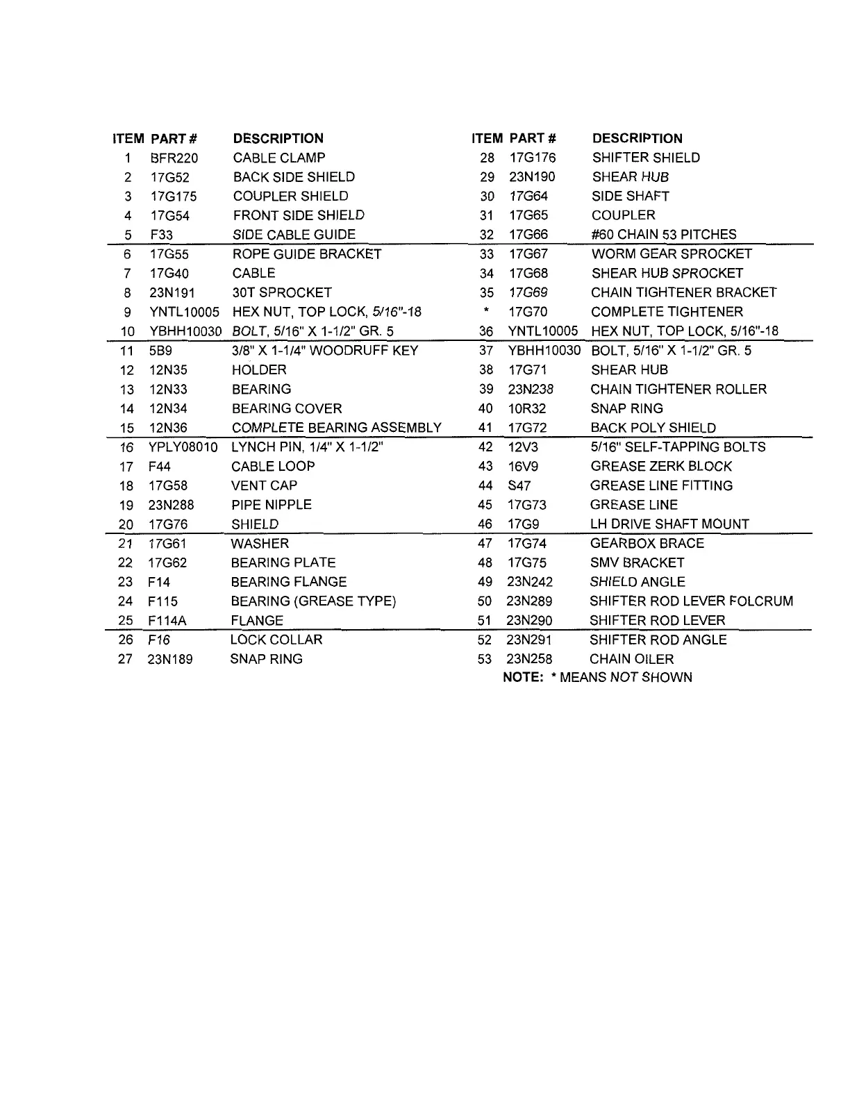 ITEM PART NO. DESCRIPTION
