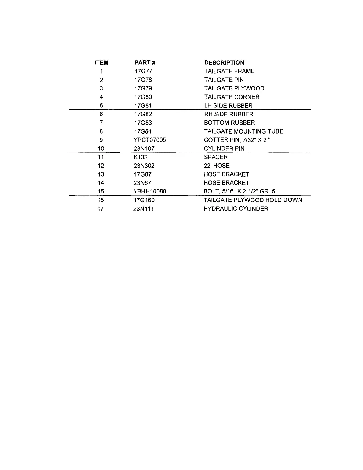 1. 17G77 Tailgate Frame