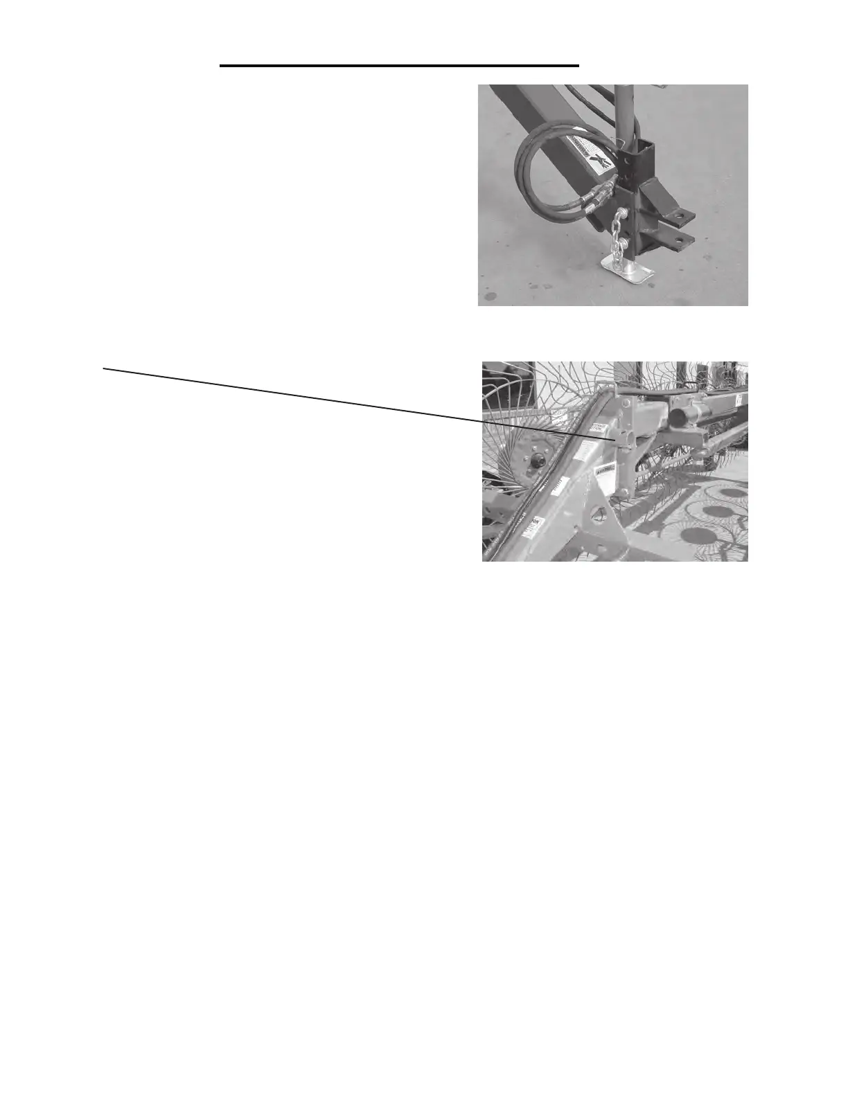 4. Connect hydraulic hose for raising and lowering rake wheels from rake to a double acting valve on the