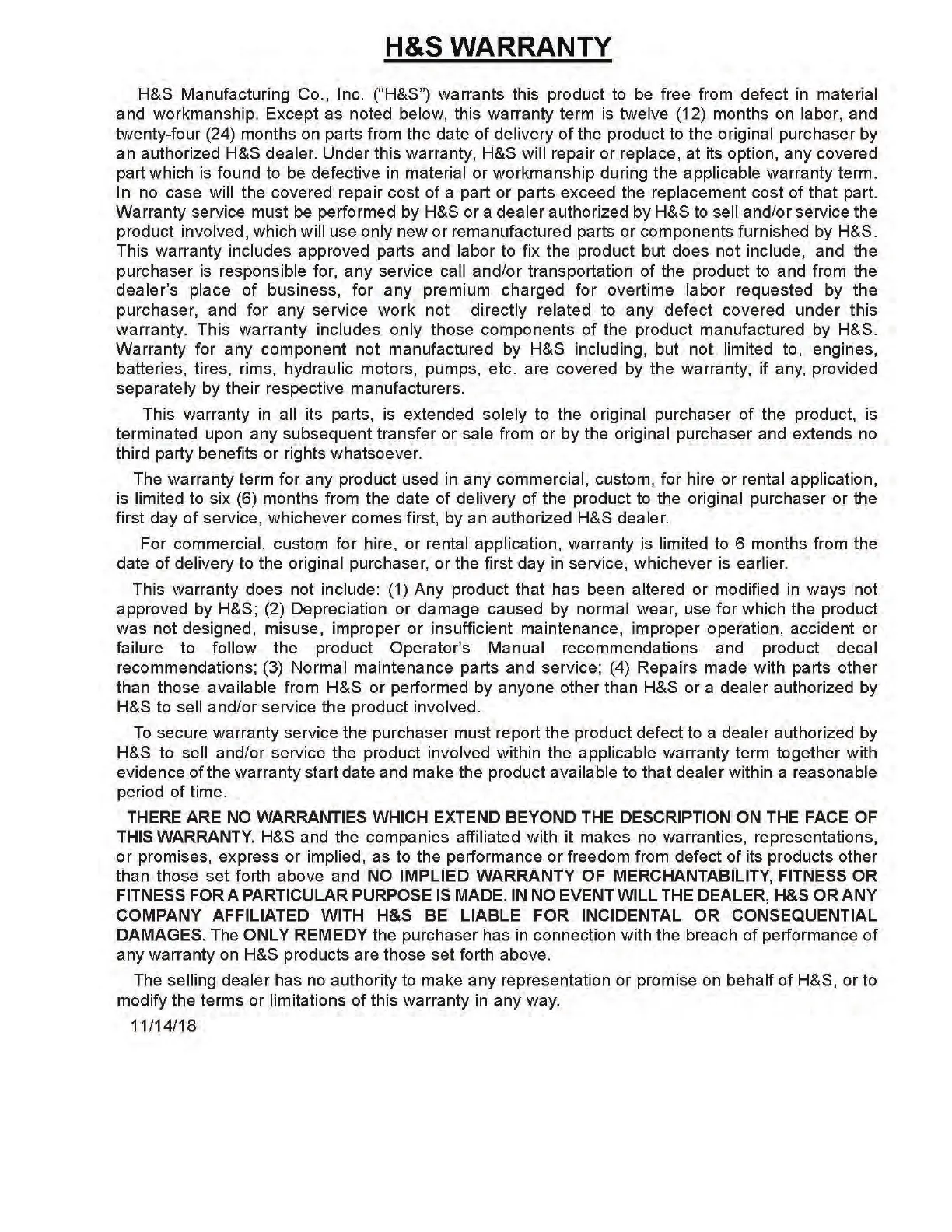 H&S 4112 - Warranty