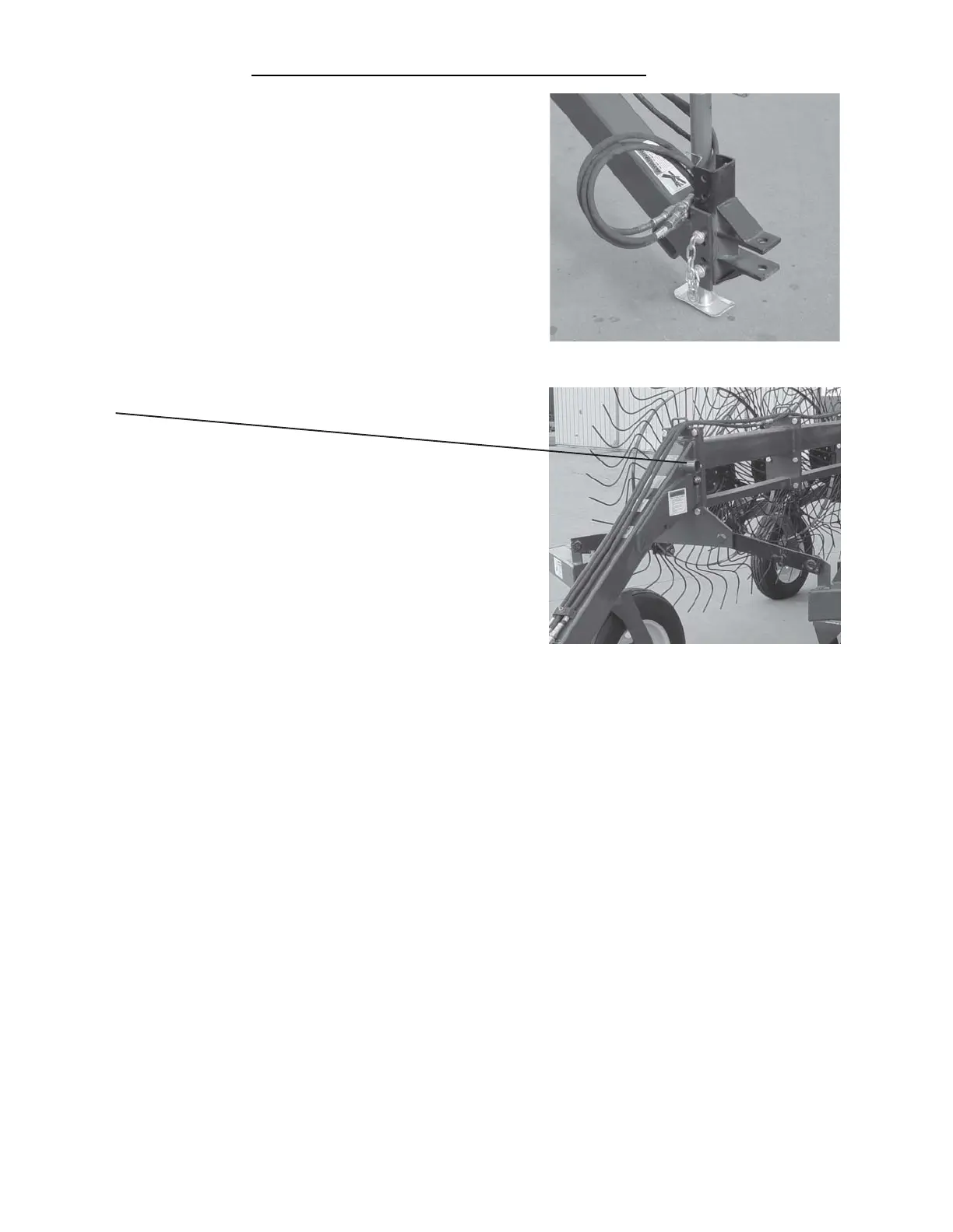4. Connect hydraulic hose for raising and lowering rake wheels from rake to a double acting valve on the