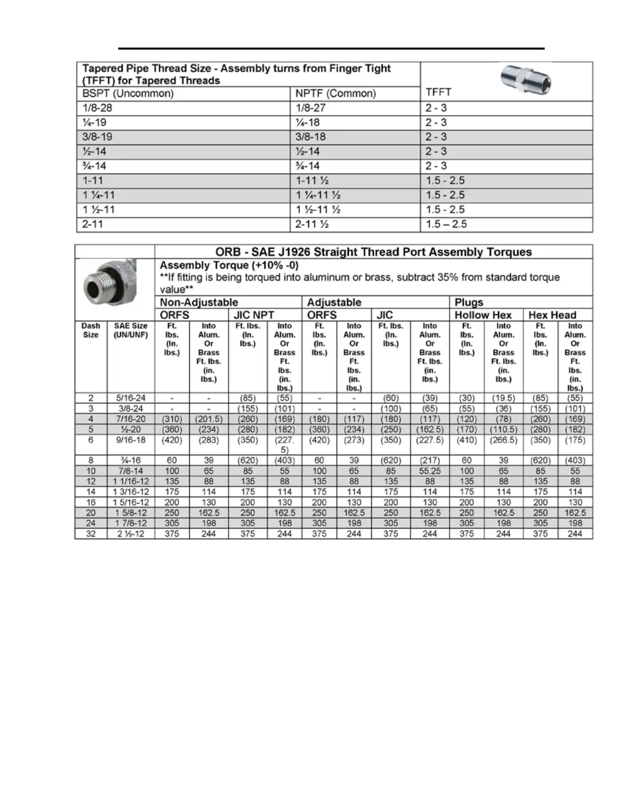 HYDRAULIC FITTING TORQUE SPECIFICATIONS