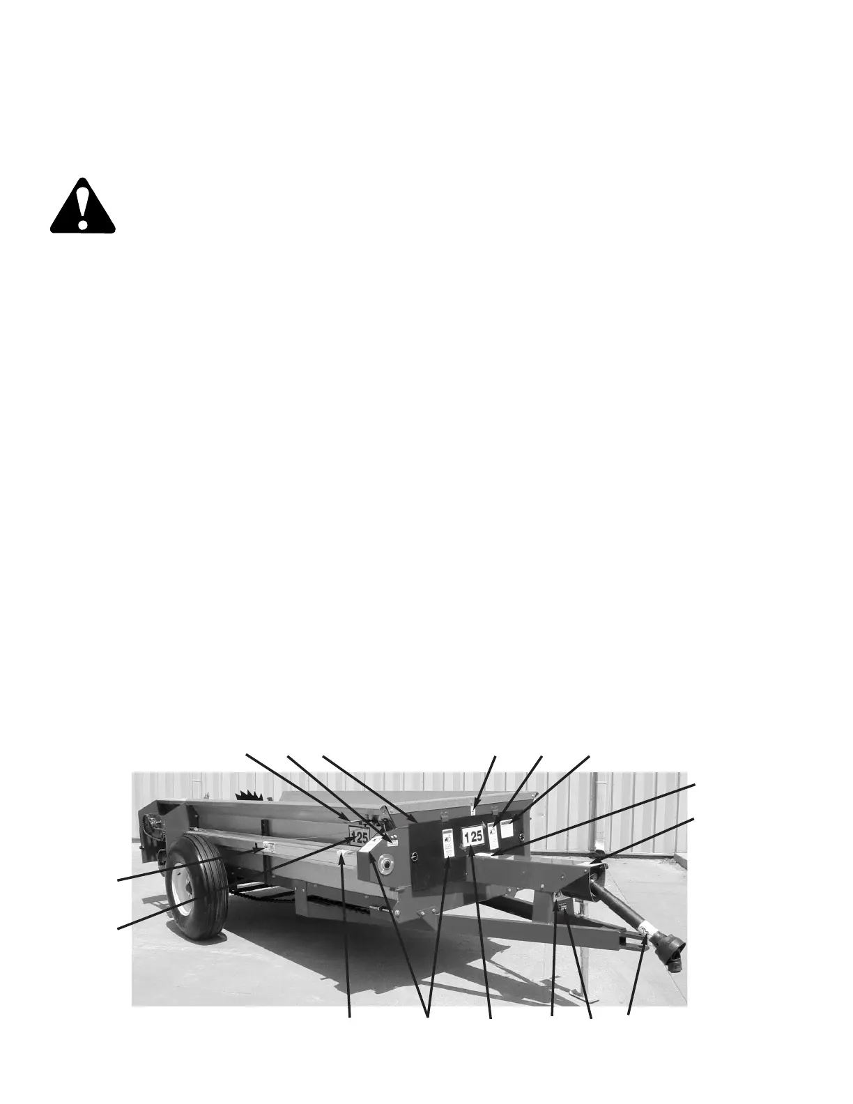 spreader are various decals to aid in operation, and warn of danger or caution areas. Pay close attention