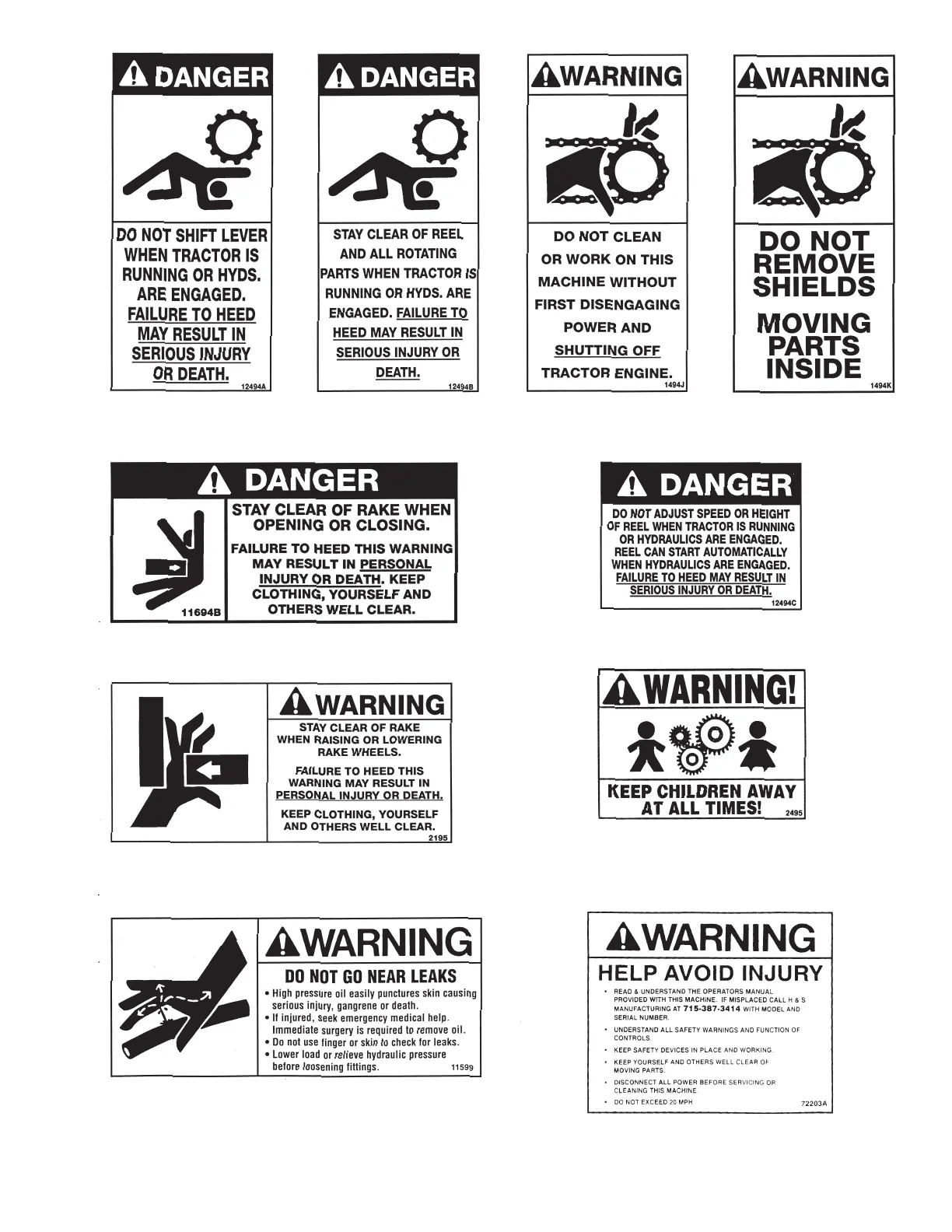 H&S HAY MACHINE II - Hazard Identification Labels