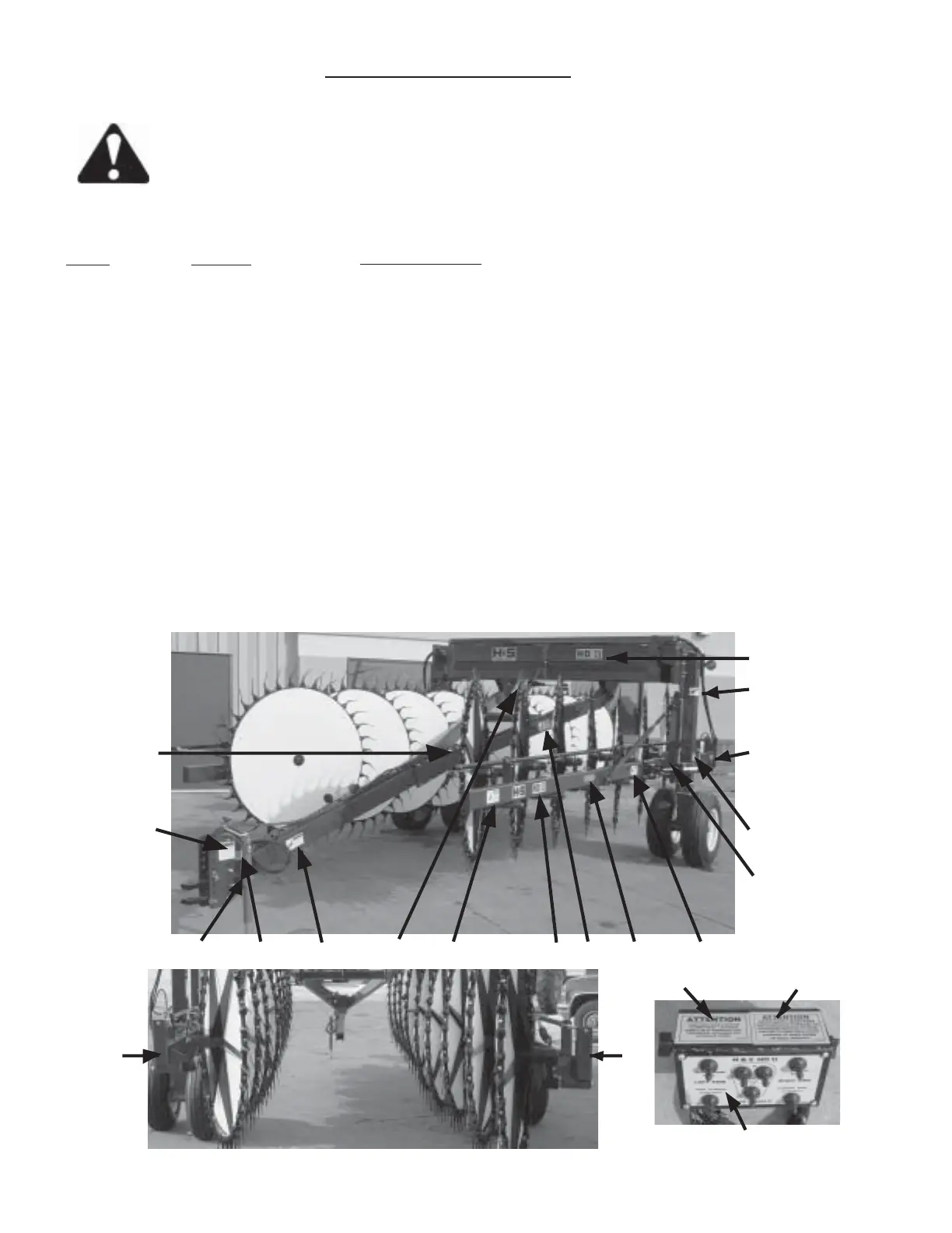 Listed below are the decals on your HDII Rake. These decals may be ordered individually by part number