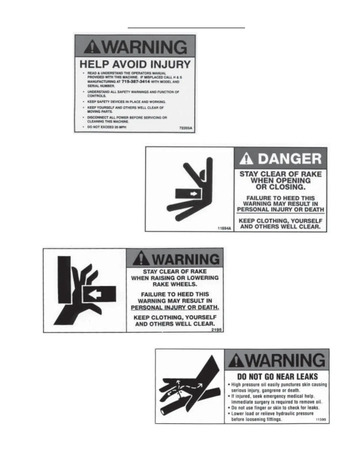 H&S HDII RAKE - Operational Safety; Specific Operational Warnings