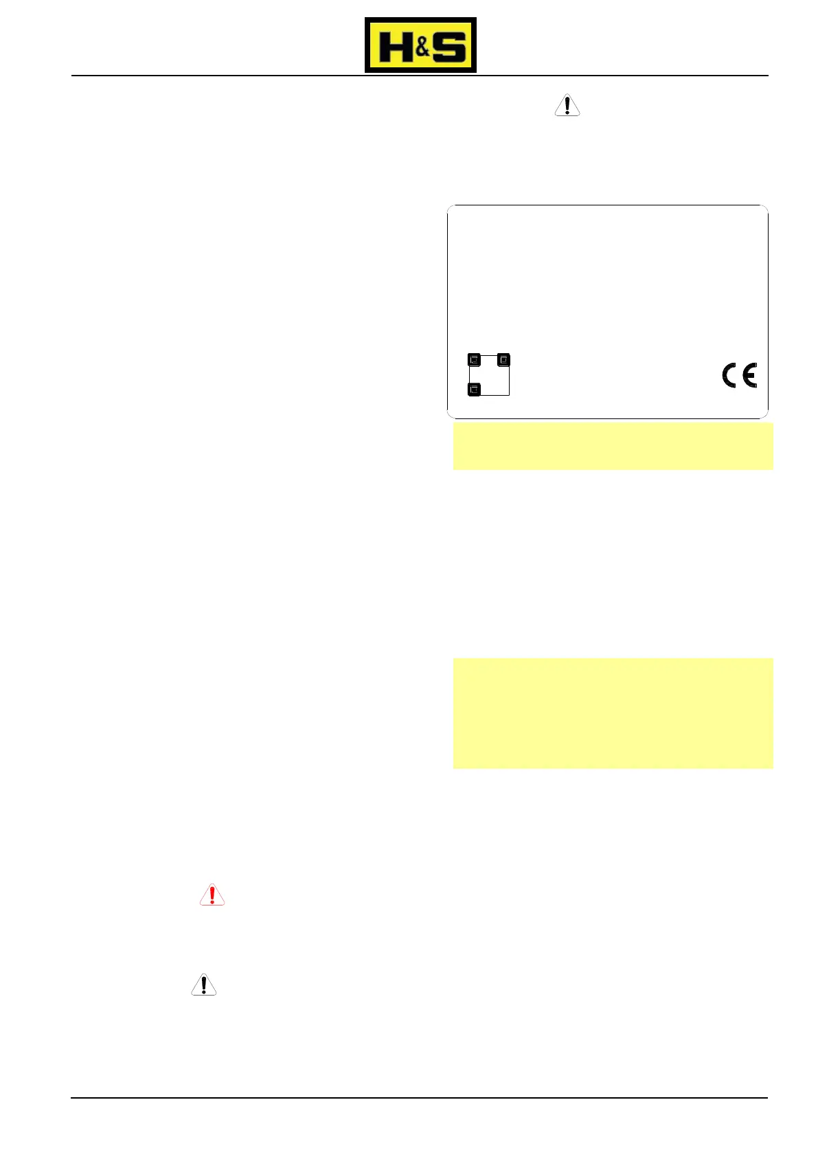 Please contact the H&S Dealer for any clarifications