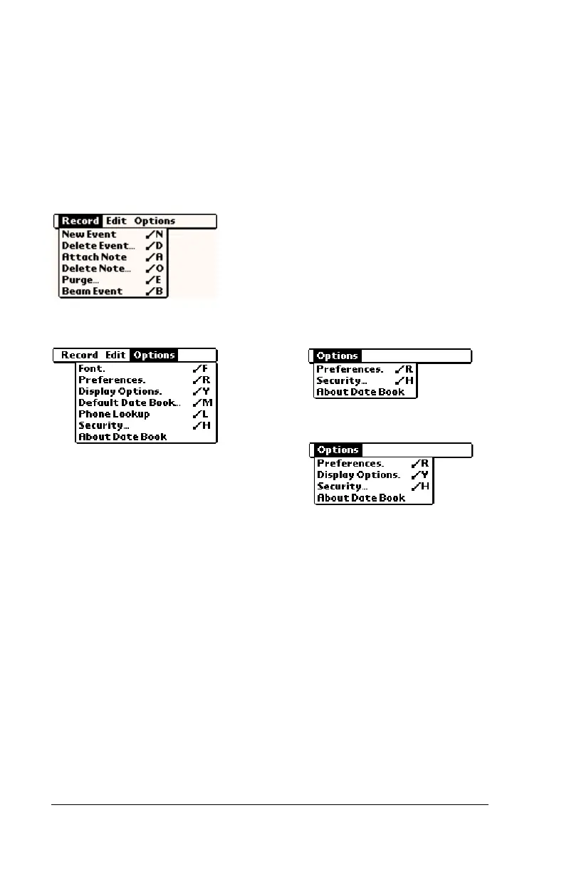 Date Book menus are shown here for your reference, and Date Book