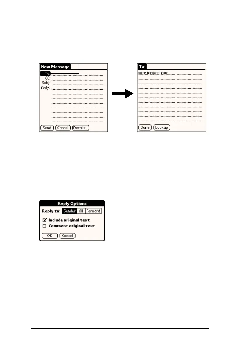 1. Tap an e-mail item in the Message list to display it onscreen.