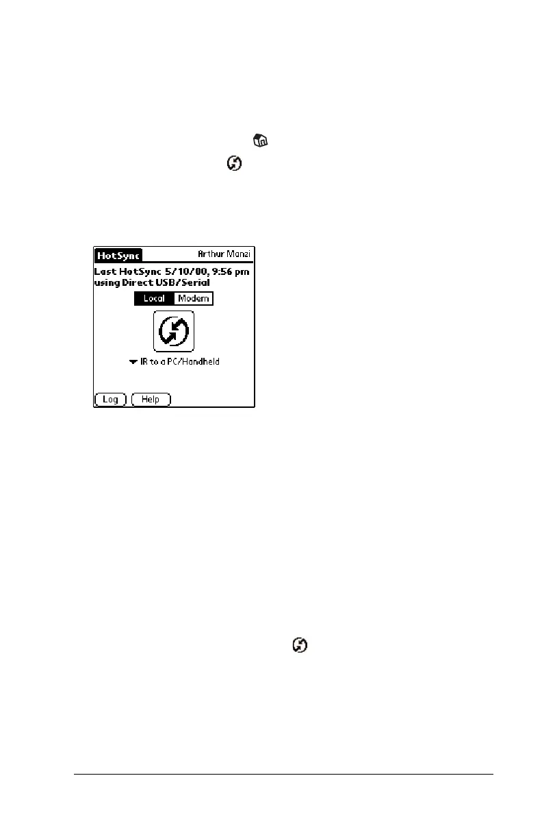 6. Tap the HotSync icon to start the IR HotSync operation.