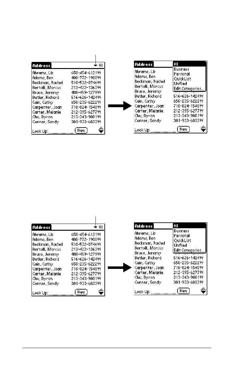1. Tap the category pick list in the upper-right corner of the list