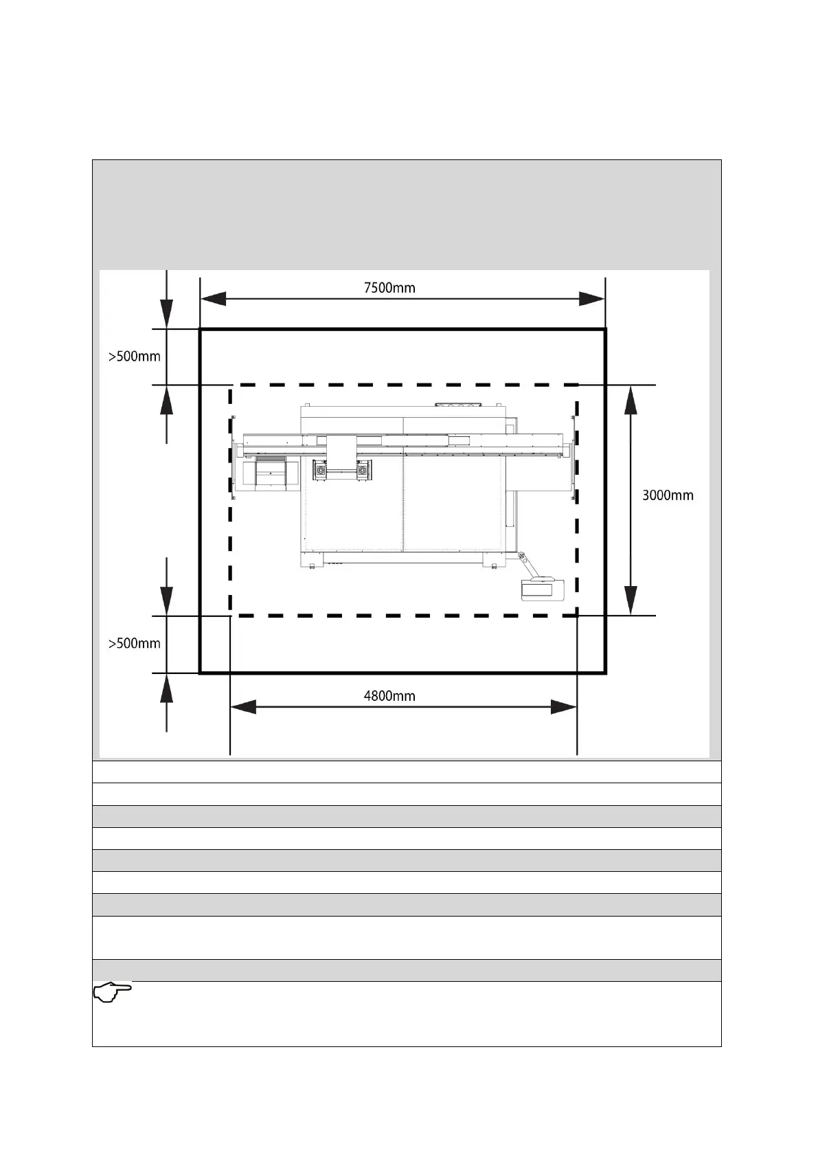 Note that at least 500mm free area should be set for both front and rear side.