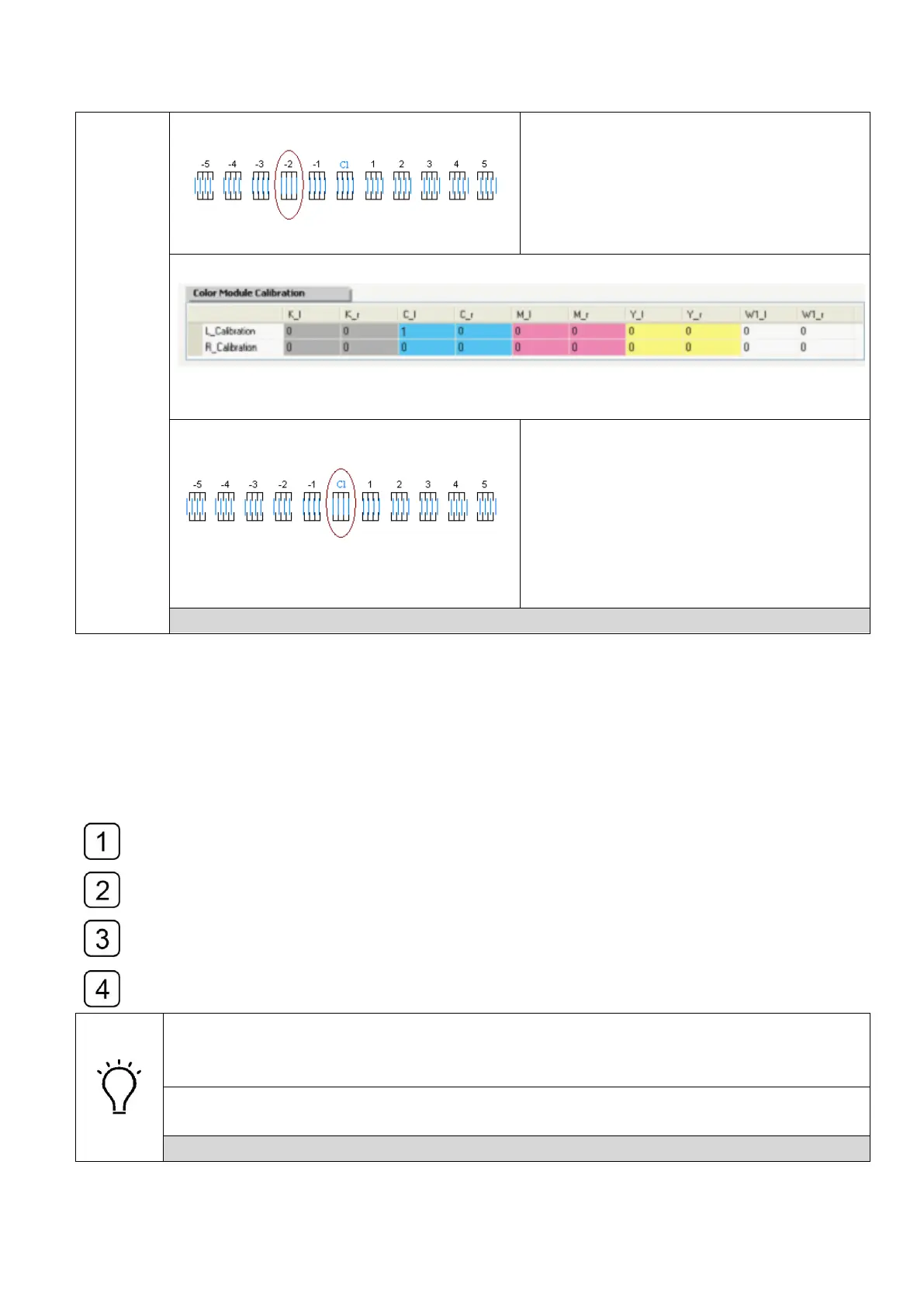 Use the magnifier to observe the best alignment of the offset calibration print and take