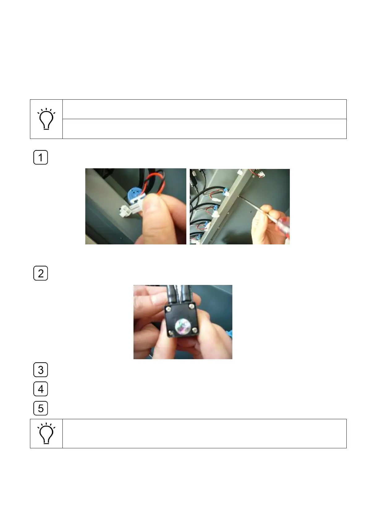Disconnect the plug of the ink pump cable and loosen the screws of the fixture.