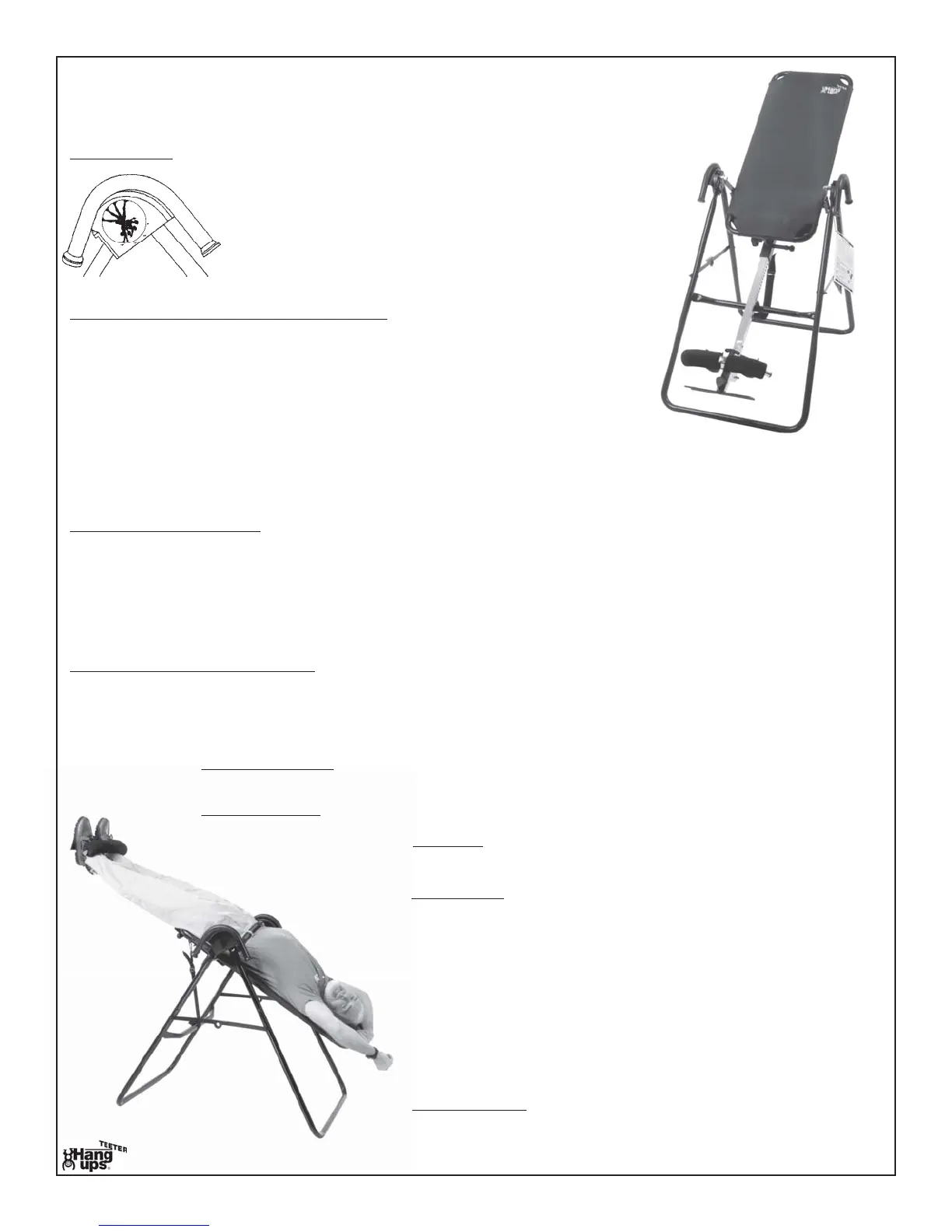 ever inverting beyond 60 degrees. Muscle stretching and relaxation can be realized at as little as 20 degrees.