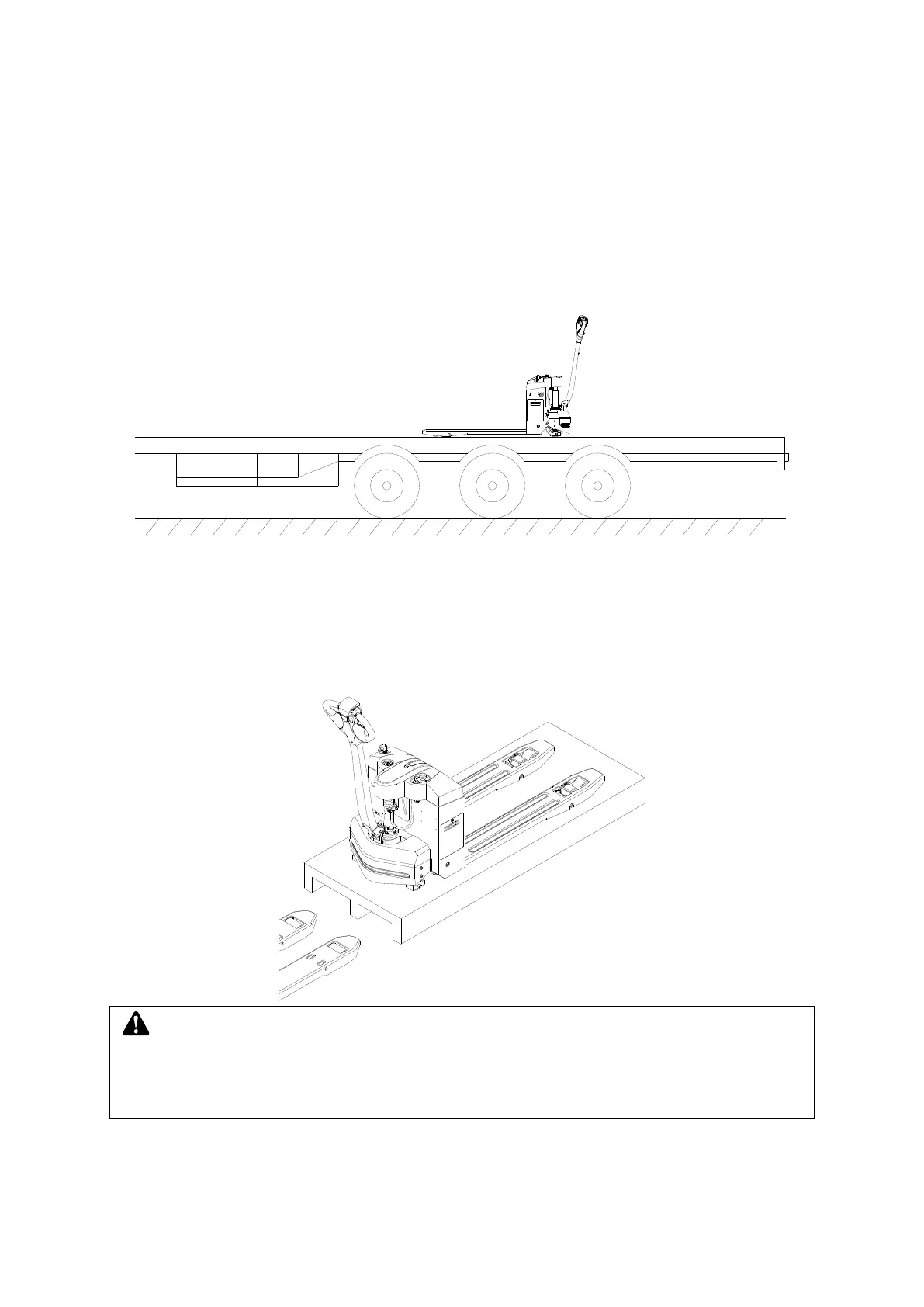 platform to place it on truck or trailer. Before operation, fix the pallet truck firmly on the transport