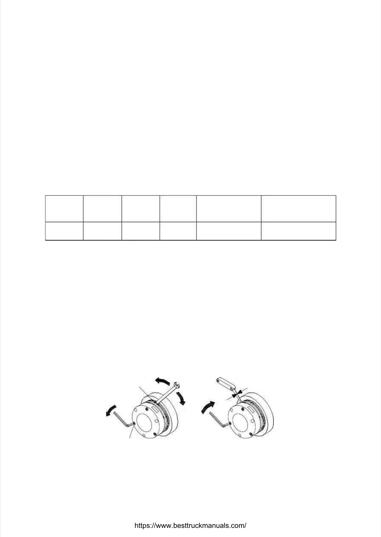On the condition of power disconnected, through adjusting 3 mounting bolts of brake (1) and theOn the condition of power disconnected, through adjusting 3 mounting bolts of brake (1) and the